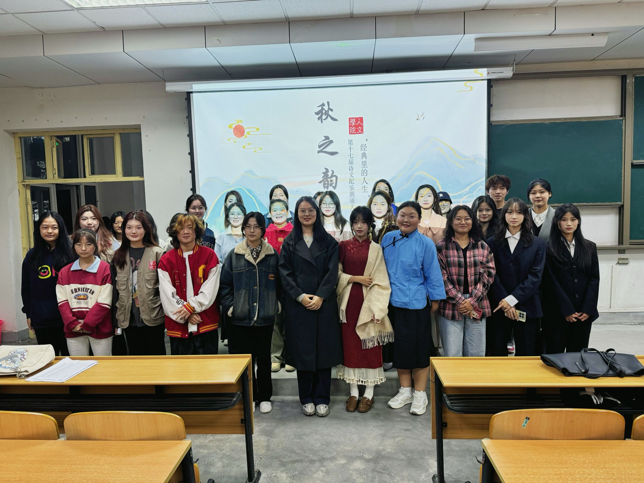 為進(jìn)一步加強我校校園美育環(huán)境建設(shè),完善美育體系,提高學(xué)生的審美和人文素養(yǎng)。10月31日晚,人文學(xué)院在鄠邑校區(qū)博覽樓A139教室開展了第十七屆“秋之韻”詩文配樂朗誦院系初賽,2024級輔導(dǎo)員樊煜及全體學(xué)生參加此次活動。