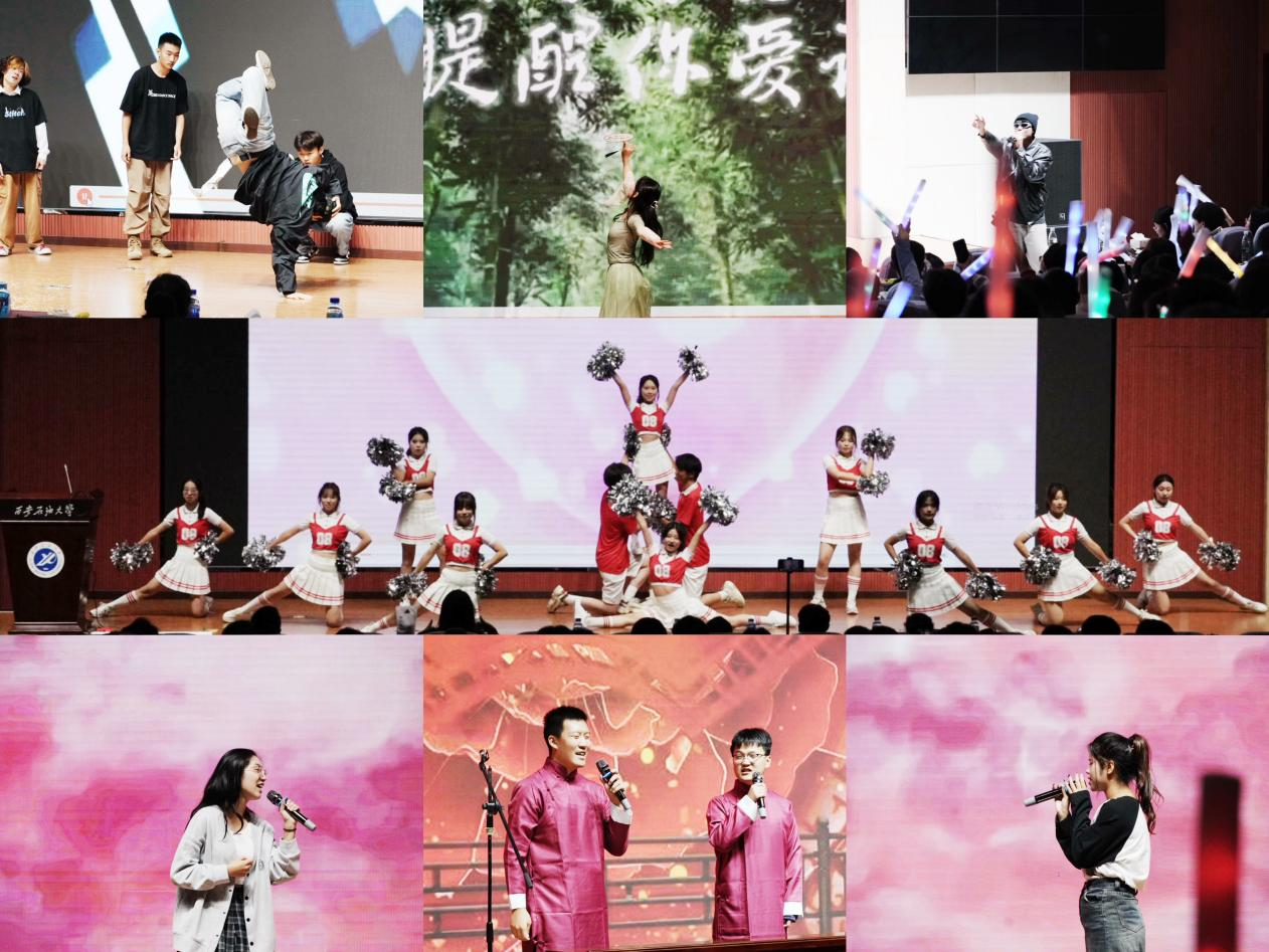 演出在團(tuán)體啦啦操表演中正式拉開序幕。隨后,形式多樣、內(nèi)容豐富的歌曲、相聲、舞蹈、小品等文藝節(jié)目依次登場(chǎng),奏響了同學(xué)們青春的樂(lè)章。說(shuō)唱《曬》道出青年永不言敗的生活態(tài)度,恰似驕陽(yáng)破云,熠熠生輝;舞蹈《蘭亭序》舞者們翩躚而舞,引領(lǐng)觀眾悠然領(lǐng)略獨(dú)特東方神韻,仿若墨韻流芳,詩(shī)意氤氳;歌曲《世界上的另一個(gè)我》動(dòng)人旋律悠悠奏響,絲絲縷縷,撩人心弦;相聲表演中,演員妙語(yǔ)連珠,以幽默詼諧的話語(yǔ),活靈活現(xiàn)地演繹人間百態(tài);街舞《champion》活力四射,舞者們以極具爆發(fā)力的舞步,淋漓盡致地詮釋當(dāng)代青年的熱血與霸氣,仿若烈火燃情,震撼人心;歌曲《就讓這大雨全都落下》音符跳躍,奏響一場(chǎng)情緒的磅礴大雨,如泣如訴,惹人共情;話劇《八十一難》生動(dòng)詮釋師徒四人西天取經(jīng)那布滿荊棘的征程,盡顯堅(jiān)毅,恰似史詩(shī)畫卷,徐徐展開;吉他彈唱《世間美好與你環(huán)環(huán)相扣》淺吟低唱,引領(lǐng)觀眾漫步走進(jìn)那愛(ài)意滿溢的世界,靜靜感受人世間的美好溫情,如沐春風(fēng);舞蹈《拉丁舞串燒》活力奔放,表演者們熱情似火的舞步與音樂(lè)節(jié)奏相互交融,將拉丁風(fēng)情展現(xiàn)得酣暢淋漓;歌曲《不再猶豫》激昂旋律奏響,驅(qū)散心頭的迷茫,振奮人心;韓舞《世界末日》扣人心弦,表演者憑借獨(dú)特舞步帶領(lǐng)觀眾踏入一個(gè)震撼人心的舞蹈時(shí)空;歌曲《如愿》余音繞梁,為此次開幕式畫上了圓滿的句號(hào),令人回味。