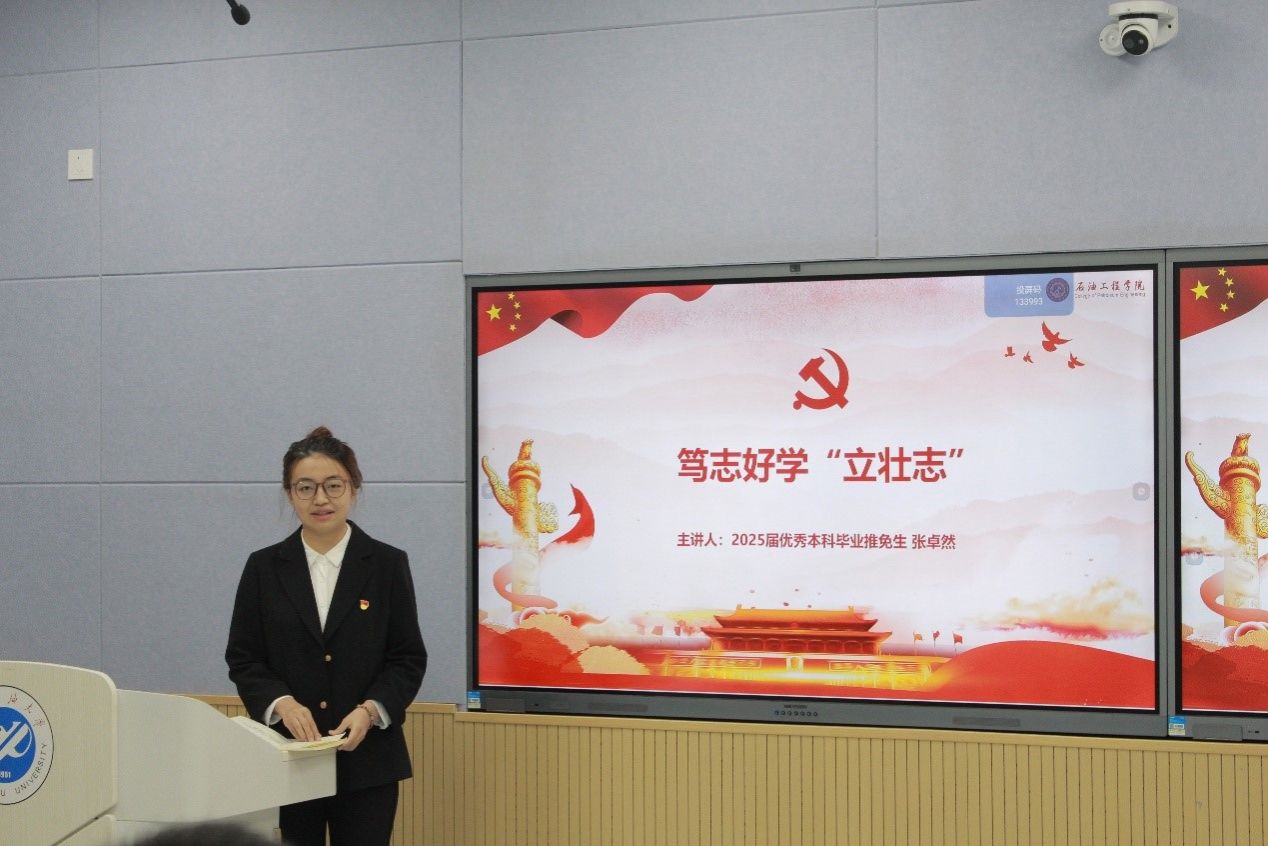 第二十七屆研究生支教團(tuán)成員鄭楊博成功保研至北京大學(xué)的張卓然進(jìn)行了經(jīng)驗(yàn)分享。各位優(yōu)秀的同志以積極的態(tài)度和行動(dòng),帶動(dòng)身邊的每一個(gè)人,共同創(chuàng)造精彩篇章。之后支部書記王班騫講黨課,帶領(lǐng)大家學(xué)習(xí)了習(xí)近平總書記在國(guó)家勛章和國(guó)家榮譽(yù)稱號(hào)頒授儀式上的重要講話,并觀看了國(guó)家勛章和國(guó)家榮譽(yù)稱號(hào)頒授儀式現(xiàn)場(chǎng)視頻,呼吁大家作為新一代石油學(xué)子,要深入學(xué)習(xí)貫徹習(xí)近平總書記關(guān)于國(guó)家能源安全的重要論述,牢記習(xí)近平總書記的殷切囑托,堅(jiān)決貫徹落實(shí)國(guó)家能源安全新戰(zhàn)略,大力弘揚(yáng)石油精神和鐵人精神,努力學(xué)習(xí)專業(yè)知識(shí)和行業(yè)前沿理論,為保障國(guó)家能源安全貢獻(xiàn)青春力量。