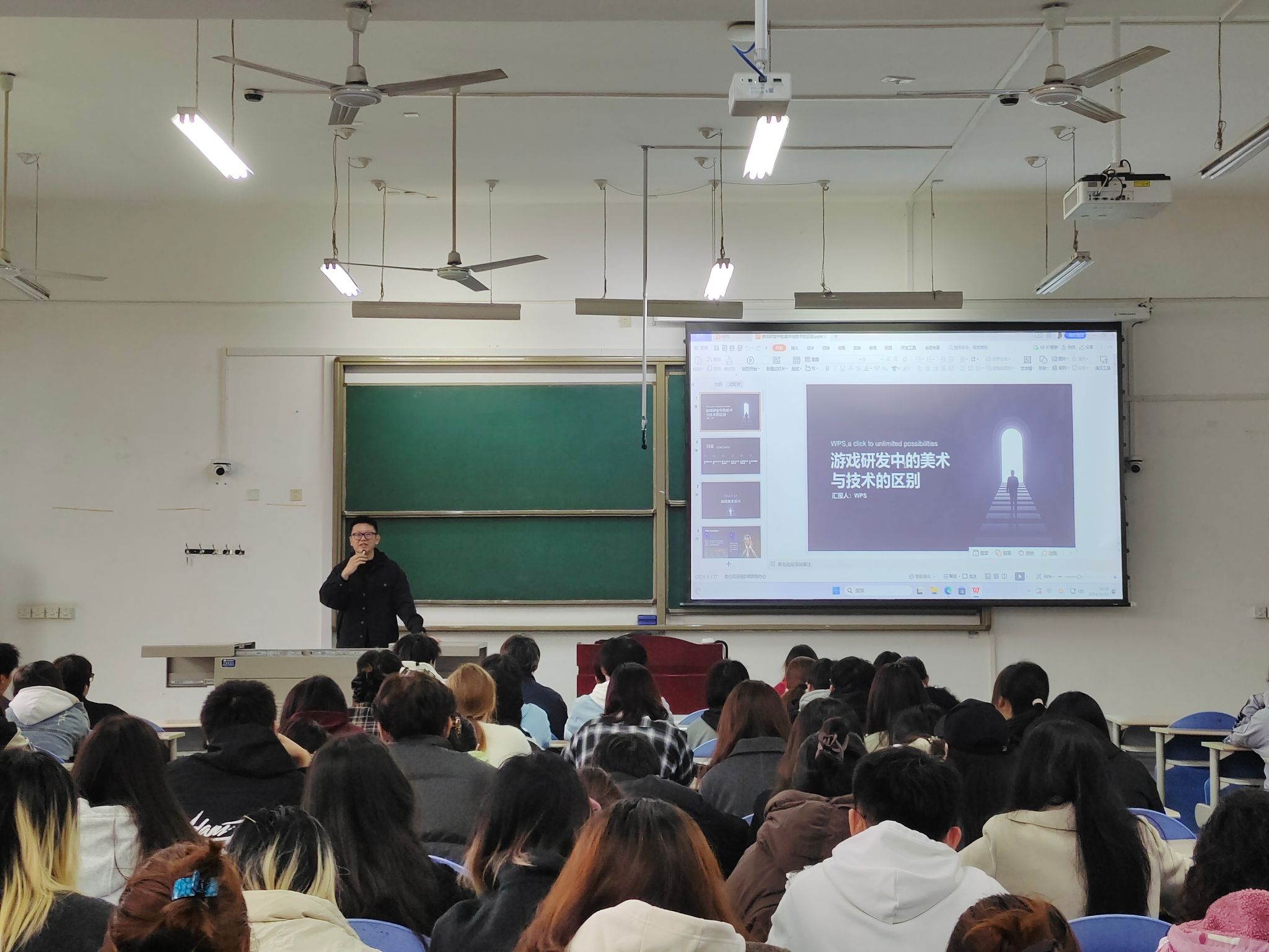 為幫助設(shè)計專業(yè)學(xué)生提前考慮發(fā)展方向,了解游戲行業(yè)形勢,提升就業(yè)競爭力,樹立正確擇業(yè)觀。11月13日下午,人文學(xué)院邀請西安果動優(yōu)培在鄠邑校區(qū)博思樓B103開展了主題為《游戲美術(shù)攻略指南》專題講座,2022級、2023級設(shè)計專業(yè)200余名學(xué)生參加。