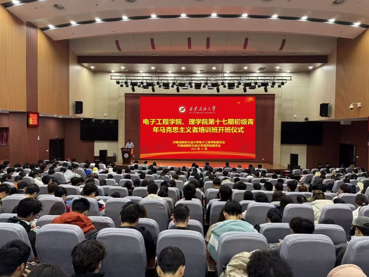 楊富民宣讀了《關于舉辦西安石油大學電子工程學院、理學院第十七期初級青年馬克思主義者培訓班的通知》;龐波宣讀了《初級青馬班學員培訓守則》;測控2402班廖紫妤同學作為學員代表作了表態(tài)發(fā)言。