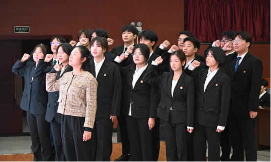 學(xué)院團(tuán)委書記王璟帶領(lǐng)新任團(tuán)委委員、新一屆學(xué)生委員會(huì)委員面向國(guó)旗莊嚴(yán)宣誓就職。新任委員代表劉丹陽(yáng)作工作展望。