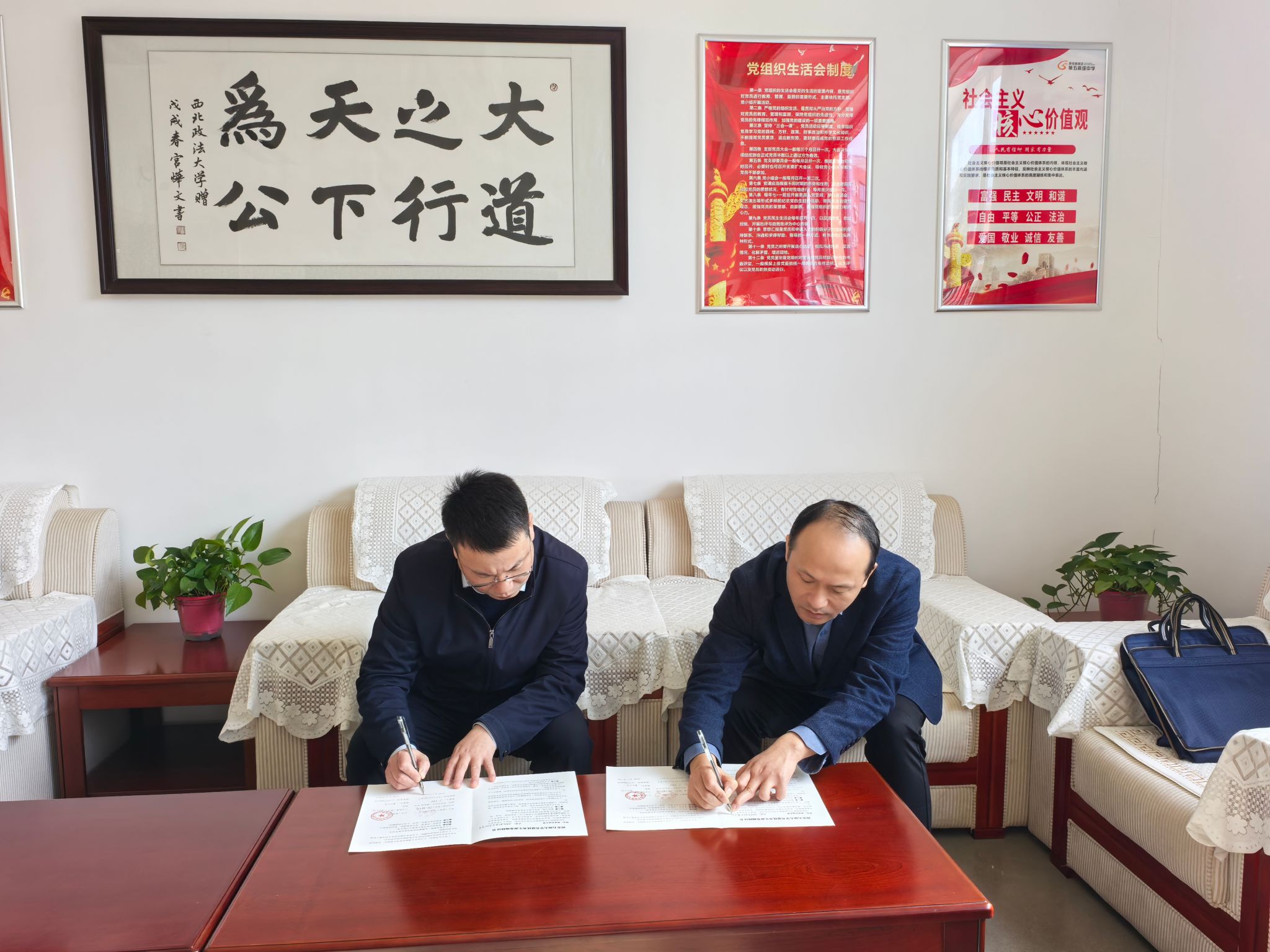 報告結束后,陳國祥與車大鵬代表雙方學校簽署了《西安石油大學優(yōu)秀生源基地建設協(xié)議》,席利哲代表學校向西安高新區(qū)第五高級中學授予了“優(yōu)秀生源基地”牌匾。