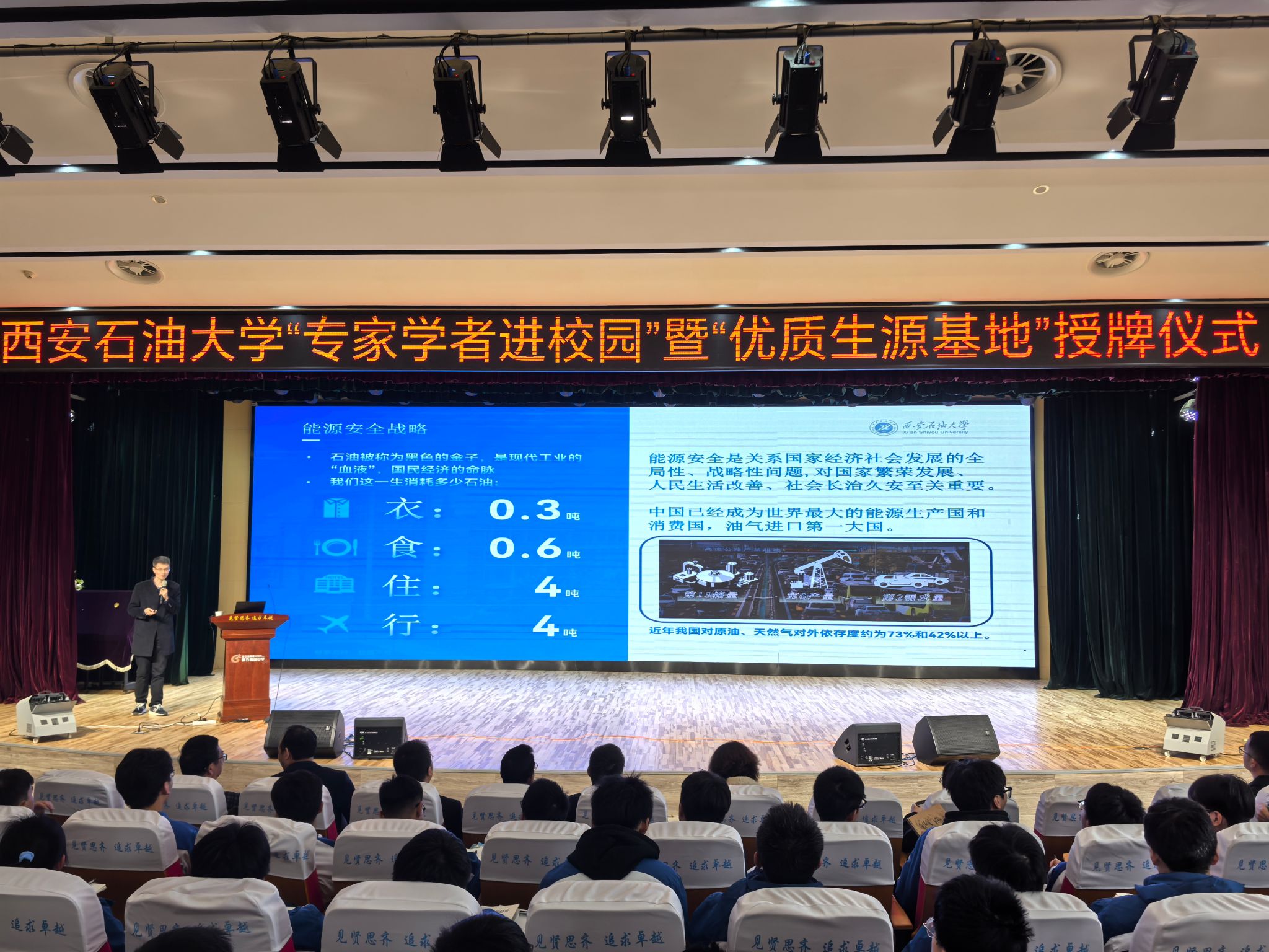 材料科學與工程學院黨委副書記、西安石油大學招生辦公室主任屈敏佳作了《新高考招生政策宣講》講座。他從西安石油大學的辦學歷史、學科專業(yè)布局、升學就業(yè)、對外交流合作、校園文化活動及校園環(huán)境設施等方面詳細介紹了學校的基本情況,接著從2025年新高考政策的背景、改革方向、選考科目等方面進行了邏輯清晰、條理分明的解讀。兩場精彩報告獲得與會師生一致好評。