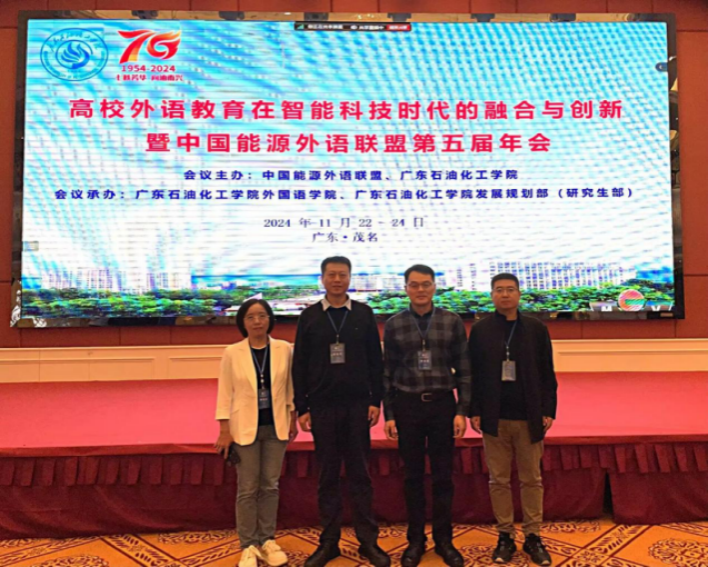 2024年11月22-24日,中國能源外語聯(lián)盟第五屆年會在廣東石油化工學(xué)院成功舉辦,來自中國石油大學(xué)(北京)、中國礦業(yè)大學(xué)(北京)、中國礦業(yè)大學(xué)(華東)、中國地質(zhì)大學(xué)(武漢)、西南石油大學(xué)、華北電力大學(xué)、長江大學(xué)、東北石油大學(xué)等40多所能源類院校的專家學(xué)者齊聚一堂,共同探討高校外語教育在智能科技時代的融合與創(chuàng)新,為外語教學(xué)提供了創(chuàng)新發(fā)展的新思路新方法。外國語學(xué)院副院長陳武帶隊一行4人參加了此次年會。