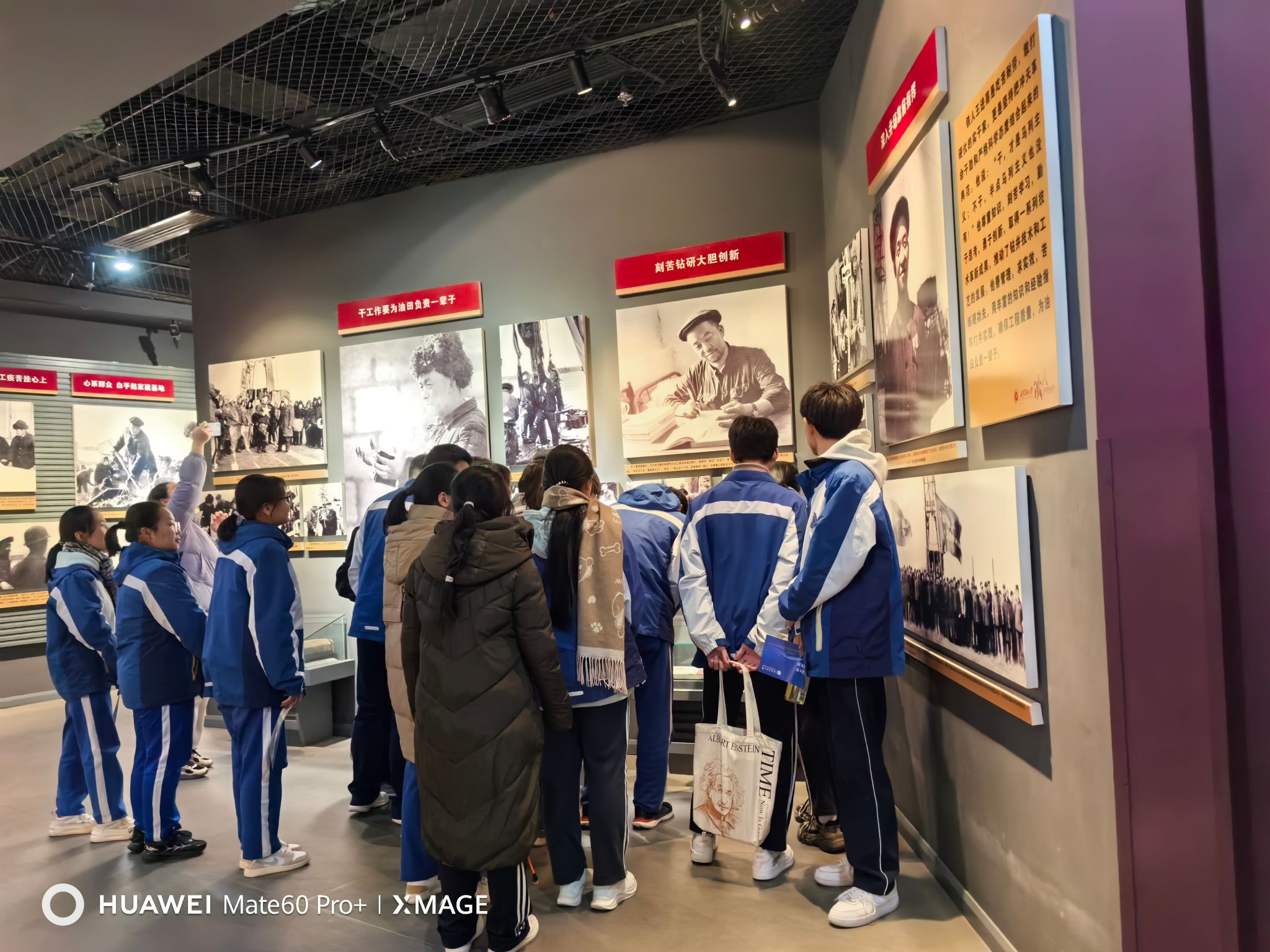 研學活動首站來到鐵人紀念館和校史館,在講解員們的引領下,五高師生代表分為兩組進行了參觀。在鐵人紀念館,通過講解員細致的講解,結合一幅幅珍貴的照片、一件件實物展品,五高師生深切感受到鐵人47年的不凡人生歷程,深刻領悟了鐵人精神的內(nèi)涵。在校史館,跟隨講解員的步伐,五高師生認真聆聽了我校的建設發(fā)展歷程,透過一個個展板,一件件歷史實物,大家學習了先輩們篳路藍縷艱苦辦學的奮斗精神、專家學者潛心育人的優(yōu)秀事跡和畢業(yè)生扎根祖國大地回饋社會的愛國情懷,深切感受到我校的校園文化和學習氛圍,也激發(fā)起內(nèi)心對大學生活的向往和憧憬。