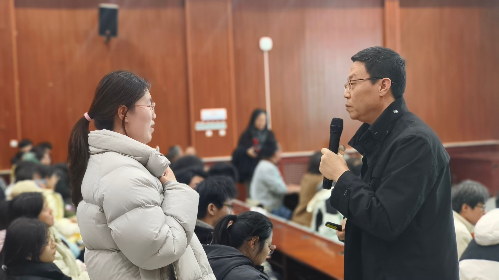 四位老師從多個(gè)角度介紹了各專(zhuān)業(yè)的獨(dú)特魅力和廣闊前景,結(jié)合當(dāng)前專(zhuān)業(yè)就業(yè)崗位信息和碩士、博士階段學(xué)習(xí)內(nèi)容,鼓勵(lì)2023級(jí)計(jì)算機(jī)類(lèi)的同學(xué)們能夠根據(jù)自身興趣特點(diǎn),找到最適合自己的發(fā)展道路。四位老師并就現(xiàn)場(chǎng)同學(xué)提出的圍繞專(zhuān)業(yè)課程學(xué)習(xí)、就業(yè)前景等問(wèn)題進(jìn)行了詳細(xì)解答,幫助學(xué)生全面了解各專(zhuān)業(yè)的培養(yǎng)方案、人才培養(yǎng)目標(biāo)、職業(yè)發(fā)展方向和優(yōu)秀畢業(yè)生風(fēng)采。