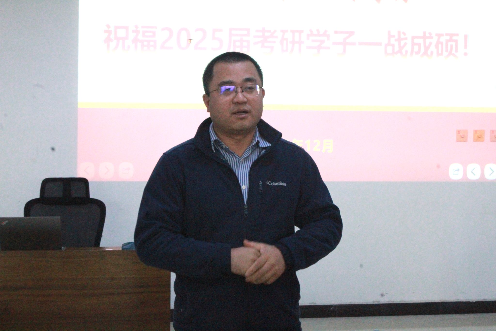 黃海在發(fā)言中進(jìn)一步表達(dá)了對(duì)考研學(xué)子的關(guān)心與支持,他表示,學(xué)院始終將學(xué)生的成長與發(fā)展放在首位,將竭盡全力為同學(xué)們提供必要的支持與保障。他向同學(xué)們提出了三點(diǎn)期望,一是珍惜機(jī)會(huì),全力以赴。考研是一次寶貴的機(jī)會(huì),要珍惜這次機(jī)會(huì),全力以赴,為自己的未來奮斗,“行百里者半九十”,要堅(jiān)持考完每一場考試,答完每一張卷子。二是保持自信,勇往直前。自信是成功的基石,只有相信自己,才能勇攀高峰,領(lǐng)略更廣闊的風(fēng)景,要保持自信,相信自己的實(shí)力,定能一戰(zhàn)成碩。三是展望未來,規(guī)劃人生。樹立職業(yè)生涯規(guī)劃的意識(shí),選擇自己喜歡且適合的科學(xué)研究方向,為未來的職業(yè)發(fā)展打下堅(jiān)實(shí)的基礎(chǔ),要勇于追求夢(mèng)想,不斷挑戰(zhàn)自我,實(shí)現(xiàn)自己的人生價(jià)值。