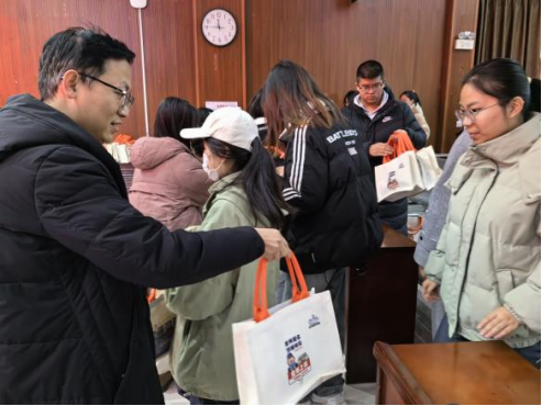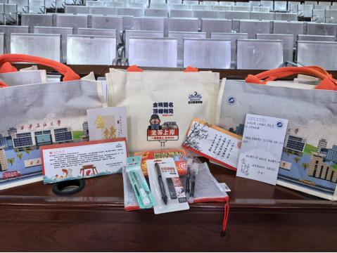 活動現場,學院為同學們送上了精心準備的考研大禮包。每一份禮物都承載著深深的祝福和期待。禮包中包含了考試專用文具、驅除寒冷的暖寶寶、學院設計的手提袋等物品。這些禮物不僅體現了學院對同學們的深切關愛和美好祝愿,更激發(fā)了同學們備考的信心和動力。同學們紛紛表示深受感動與鼓舞,表示一定會牢記囑托,以最好的狀態(tài)全力備考。