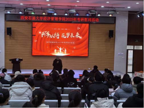 在考研沖刺階段,為鼓舞學生士氣、緩解備考壓力。12月18日,經濟管理學院在崇文樓118就業(yè)指導中心多功能廳舉行了2025屆考研學生慰問活動。學院黨委副書記楊生強、學生工作辦公室主任李博文、張碩以及2025屆輔導員劉清共同參加慰問活動,活動由輔導員劉清主持。