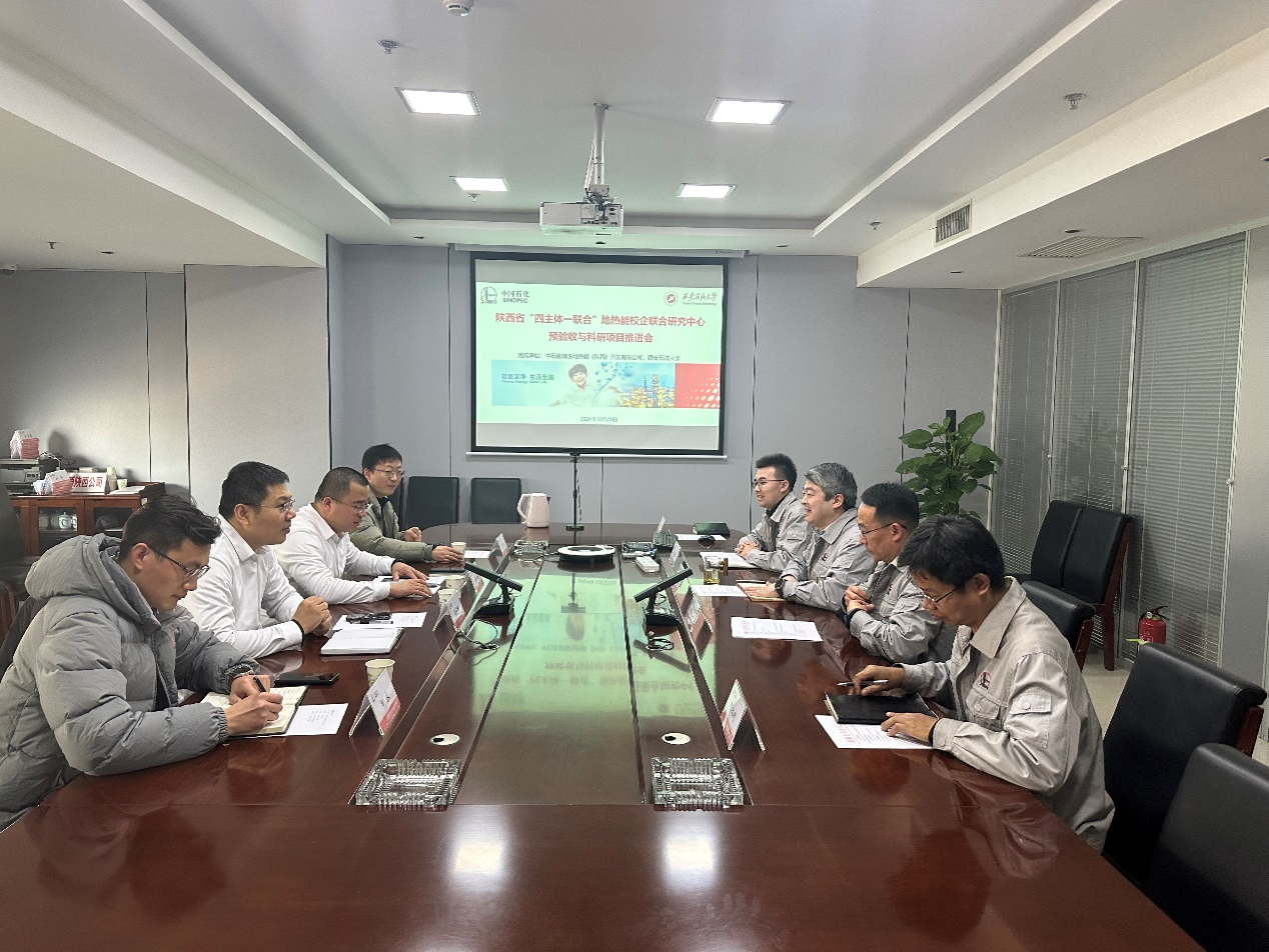 會上,中石化綠源地熱能(陜西)開發(fā)有限公司匯報了“四主體一聯(lián)合”地熱能校企聯(lián)合研究中心建設情況,雙方就西安熱電砂巖熱儲群采群灌、流動取熱機制、開采調控優(yōu)化等方面進行了深入探討和交流。
