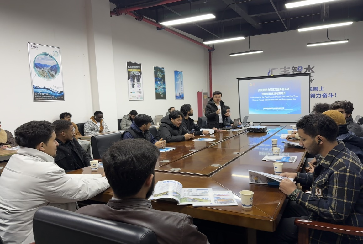 隨后,留學(xué)生們參觀了匯豐環(huán)保設(shè)備有限公司,詳細(xì)了解物聯(lián)網(wǎng)、大數(shù)據(jù)和人工智能等技術(shù)手段在智慧水務(wù)系統(tǒng)實現(xiàn)水資源的智能管理和優(yōu)化配置的原理。其間,新區(qū)部分企業(yè)介紹了各自運營模式、科技創(chuàng)新、人才需求、創(chuàng)業(yè)政策等留學(xué)生關(guān)注的話題。