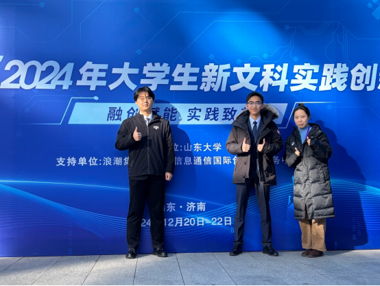 12月20日至22日,由教育部高等教育司指導,山東大學主辦的首屆大學生新文科實踐創(chuàng)新大賽決賽在山東濟南舉行。由經濟管理學院本科生徐顧銘、傳浪波等同學組成的“絲綢織路”團隊作品《多維拓源 躍遷煥新——新質生產力下中國紡織業(yè)綠色要素賦能轉型升級》作為我校唯一晉級現場賽項目入圍終審決賽,獲首屆大學生新文科實踐創(chuàng)新大賽銀獎。校團委書記王剛、經濟管理學院鄭蕊教授、任仰老師指導參賽。