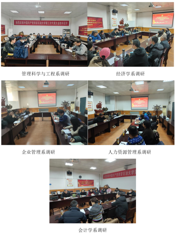 1月3日,經濟管理學院領導班子成員王君萍院長、董春詩副院長、李春霄副院長赴管理科學與工程系、會計學系、企業(yè)管理系、經濟學系、人力資源管理系調研,深入了解、梳理、總結各系教育教學成果培育情況。
