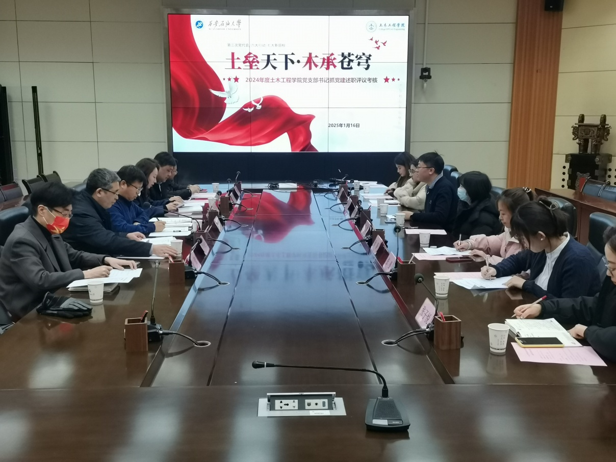 1月16日,土木工程學(xué)院在雁塔校區(qū)西階第二會議室召開2024年度黨支部書記抓黨建現(xiàn)場述職評議考核工作會議,副校長張驍勇出席會議并指導(dǎo)工作。學(xué)院黨委委員、各黨支部書記、全體輔導(dǎo)員參加會議。會議由學(xué)院院長李俊亭主持。