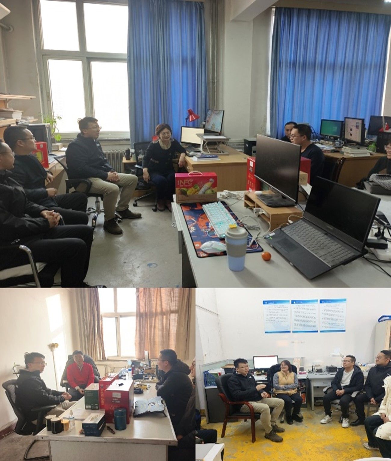 學(xué)院先后走訪了鉆機(jī)智能控制及可視化技術(shù)創(chuàng)新團(tuán)隊(duì)、油氣井智能測控技術(shù)與裝備創(chuàng)新團(tuán)隊(duì)、油氣井智能可視化技術(shù)團(tuán)隊(duì)等多個重點(diǎn)科研團(tuán)隊(duì)實(shí)驗(yàn)室,詳細(xì)了解項(xiàng)目進(jìn)展、技術(shù)難題與假期安排,鼓勵年輕科研人員抓住機(jī)遇、勇于創(chuàng)新;對教授們假期依然堅(jiān)守在科研工作一線、勤勉務(wù)實(shí)的精神進(jìn)行了充分的肯定,為學(xué)校發(fā)展做出的重要貢獻(xiàn)表示感謝。走訪過程中,學(xué)院領(lǐng)導(dǎo)班子和科研人員就人才培養(yǎng)、學(xué)科建設(shè)、科學(xué)研究、團(tuán)隊(duì)建設(shè)以及學(xué)院未來的發(fā)展方向和路徑進(jìn)行了深入交流。