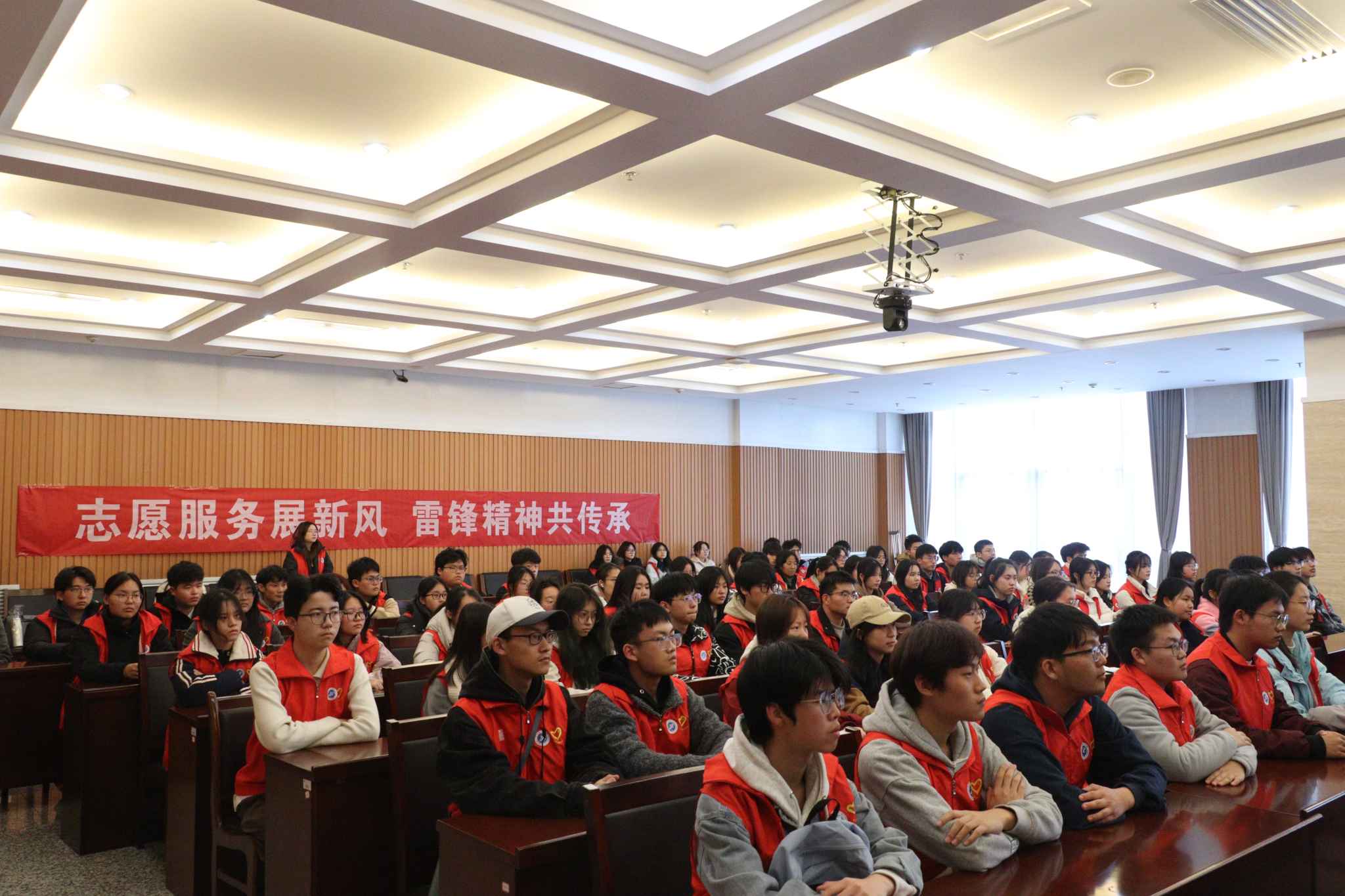 3月5日下午,在第62個(gè)“學(xué)雷鋒紀(jì)念日”和第26個(gè)“中國(guó)青年志愿者服務(wù)日”來(lái)臨之際,學(xué)校在鄠邑校區(qū)圖書館第一會(huì)議室舉辦弘揚(yáng)雷鋒精神、傳播志愿薪火,貢獻(xiàn)青春力量、爭(zhēng)做時(shí)代先鋒2025年“學(xué)雷鋒志愿服務(wù)月”活動(dòng)啟動(dòng)儀式,校團(tuán)委全體工作人員、各院(系)團(tuán)委(團(tuán)總支)書記、青年教工團(tuán)支部書記、預(yù)科班團(tuán)支部負(fù)責(zé)人、第27屆研究生支教團(tuán)、青年志愿者協(xié)會(huì)志愿者代表共計(jì)200余人參加了本次活動(dòng)。