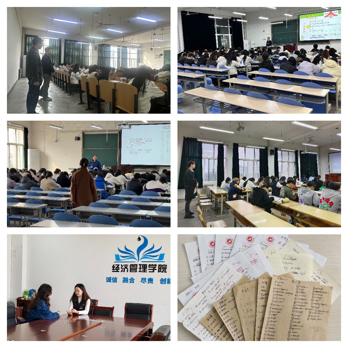 三是深入課堂強根基,學(xué)風(fēng)建設(shè)再深化。學(xué)院領(lǐng)導(dǎo)班子開展開學(xué)第一周教學(xué)檢查,深入課堂一線,重點檢查教師備課、教學(xué)秩序、課堂互動等情況,聽取師生對課程設(shè)置、教學(xué)方法等方面的建議。各年級輔導(dǎo)員將深入課堂作為常態(tài)化工作,通過與學(xué)生共聽一節(jié)課、與任課教師交流了解學(xué)生課堂情況,關(guān)注學(xué)生狀態(tài)。多措并舉推動學(xué)風(fēng)建設(shè),組織開展英語四級單詞聽寫、學(xué)業(yè)預(yù)警學(xué)生談話、考風(fēng)考紀(jì)誠信教育、職業(yè)生涯規(guī)劃講座等活動,增強學(xué)生學(xué)習(xí)主動性、積極性,引導(dǎo)學(xué)生以飽滿狀態(tài)迎接新學(xué)期。