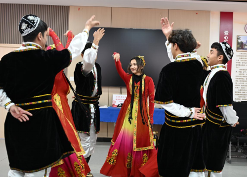 隨后,少數(shù)民族預(yù)科班學(xué)生為孩子們表演了一段熱情洋溢的民族舞。伴隨歡快的旋律,學(xué)生們以靈動(dòng)的舞姿展現(xiàn)維吾爾族舞蹈的獨(dú)特魅力,旋轉(zhuǎn)的裙擺與孩子們燦爛的笑臉交相輝映。這場文化互動(dòng)不僅為孩子們送去溫暖陪伴,更架起民族文化交流的橋梁,讓民族團(tuán)結(jié)、友愛互助的種子在童心中悄然生長。
