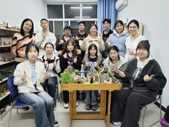 工作研討后,團(tuán)隊(duì)成員齊聚崇文樓 447(沙盤創(chuàng)作室),在老師的帶領(lǐng)下,進(jìn)行了團(tuán)體沙盤活動(dòng)。成員們積極參與創(chuàng)作和體驗(yàn),在活動(dòng)中加深了理解,增進(jìn)了溝通,團(tuán)隊(duì)更加向心凝聚。