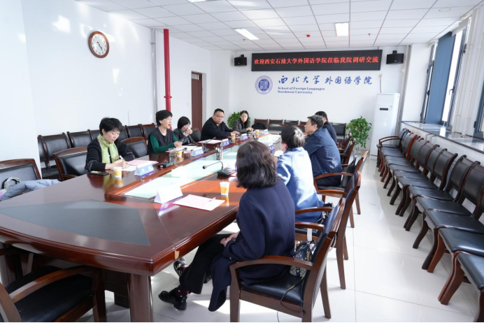 為深化校際合作,探索新文科背景下外語學(xué)科特色化發(fā)展路徑,3月18日下午,外國語學(xué)院副院長陳武率調(diào)研組赴西北大學(xué)外國語學(xué)院開展專題調(diào)研。雙方圍繞區(qū)域國別學(xué)學(xué)科建設(shè)、本科人才培養(yǎng)方案創(chuàng)新及“外語+”交叉學(xué)科融合等議題展開深入交流,共謀外語教育高質(zhì)量發(fā)展新路徑。