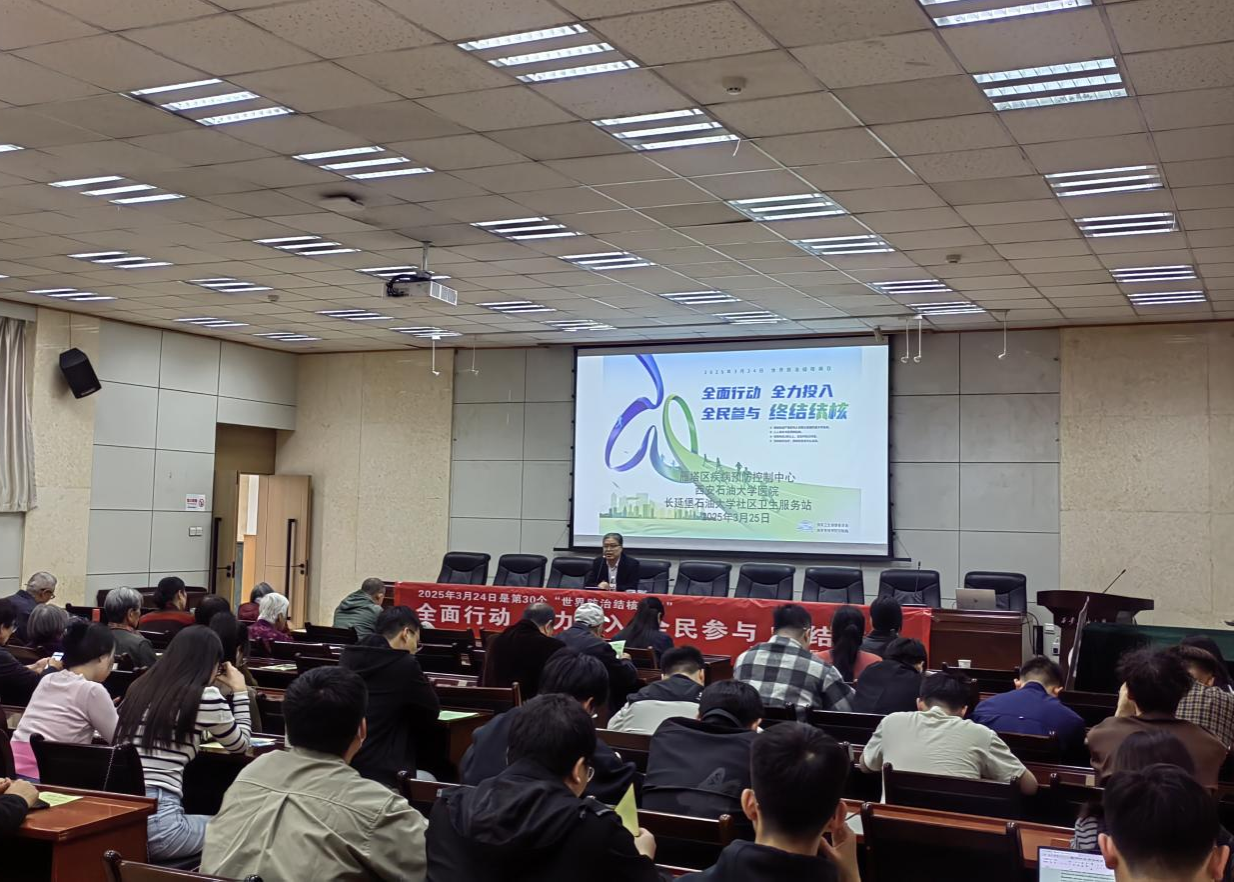 為迎接第30個“世界防治結(jié)核病日”,進(jìn)一步增強(qiáng)師生結(jié)核病防控意識,3月24日、25日下午校醫(yī)院聯(lián)合學(xué)生工作部(處)、研究生工作部邀請西安市雁塔區(qū)疾病預(yù)防控制中心副主任醫(yī)師李海軍、鄠邑區(qū)疾病預(yù)防控制中心結(jié)防科副科長王旦、鄭美辰老師分別在雁塔校區(qū)、鄠邑校區(qū)開展“全面行動 全力投入 全民參與 終結(jié)結(jié)核”、流行性出血熱專題知識講座。校醫(yī)院部分醫(yī)務(wù)人員、師生、社區(qū)居民約300人參加了講座。報告開始前,校醫(yī)院醫(yī)務(wù)人員在報告廳外設(shè)立宣傳展板、咨詢臺,為學(xué)生發(fā)放了有關(guān)結(jié)核病、流行性出血熱宣傳手冊和宣傳單等宣傳資料。