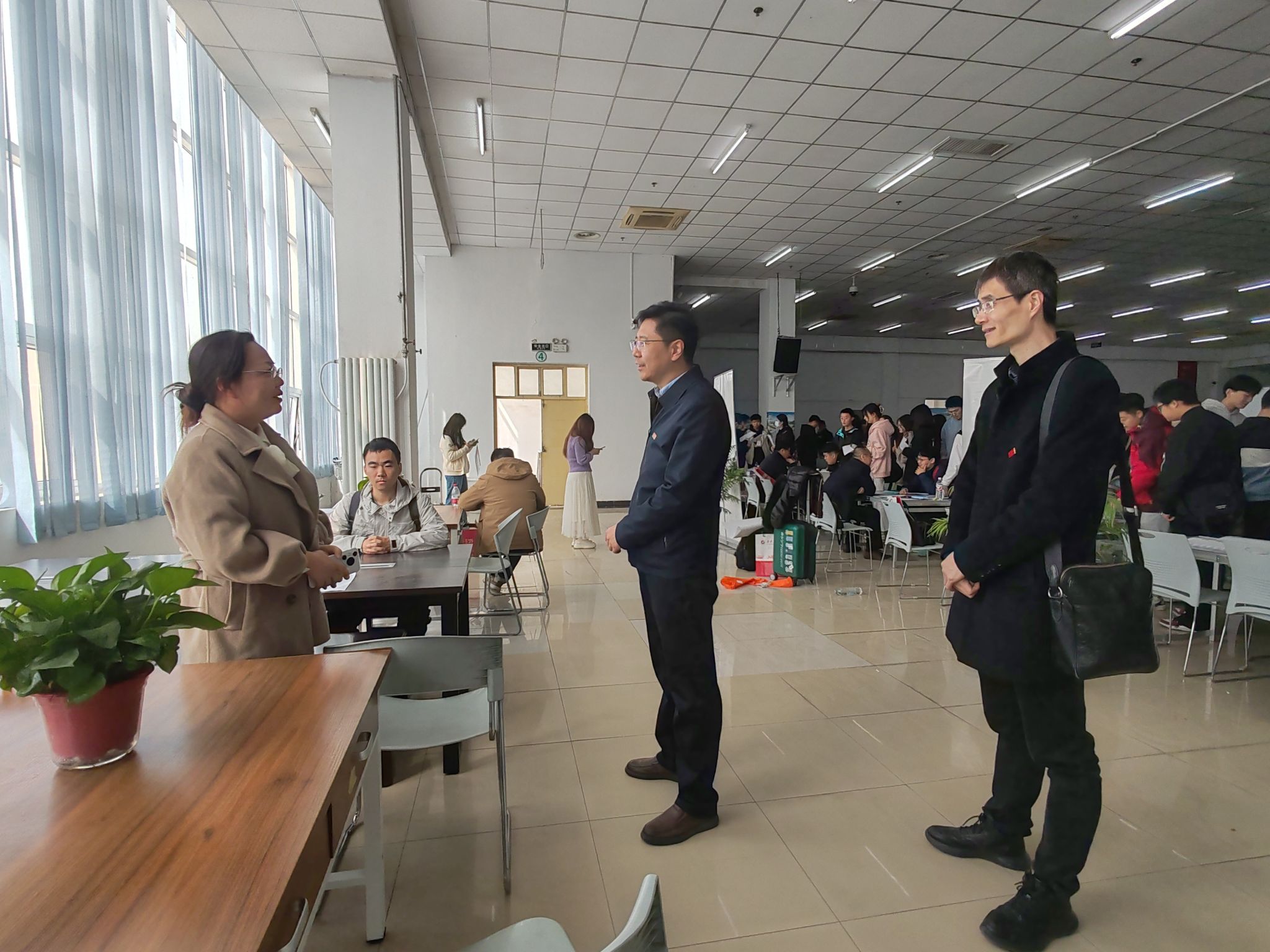 就業(yè)創(chuàng)業(yè)指導(dǎo)中心主任王亮深入招聘會場,與部分企業(yè)代表及畢業(yè)生親切交流,詳細了解企業(yè)人才需求及畢業(yè)生就業(yè)情況。他鼓勵畢業(yè)生打破地域局限,放眼全國發(fā)展,關(guān)注區(qū)域產(chǎn)業(yè)布局及政策紅利。指出應(yīng)屆畢業(yè)生應(yīng)理性調(diào)整預(yù)期,不斷學(xué)習(xí)新知識、新技能,強化一專多能,善用各類資源,加強技能儲備,提高求職競爭力。