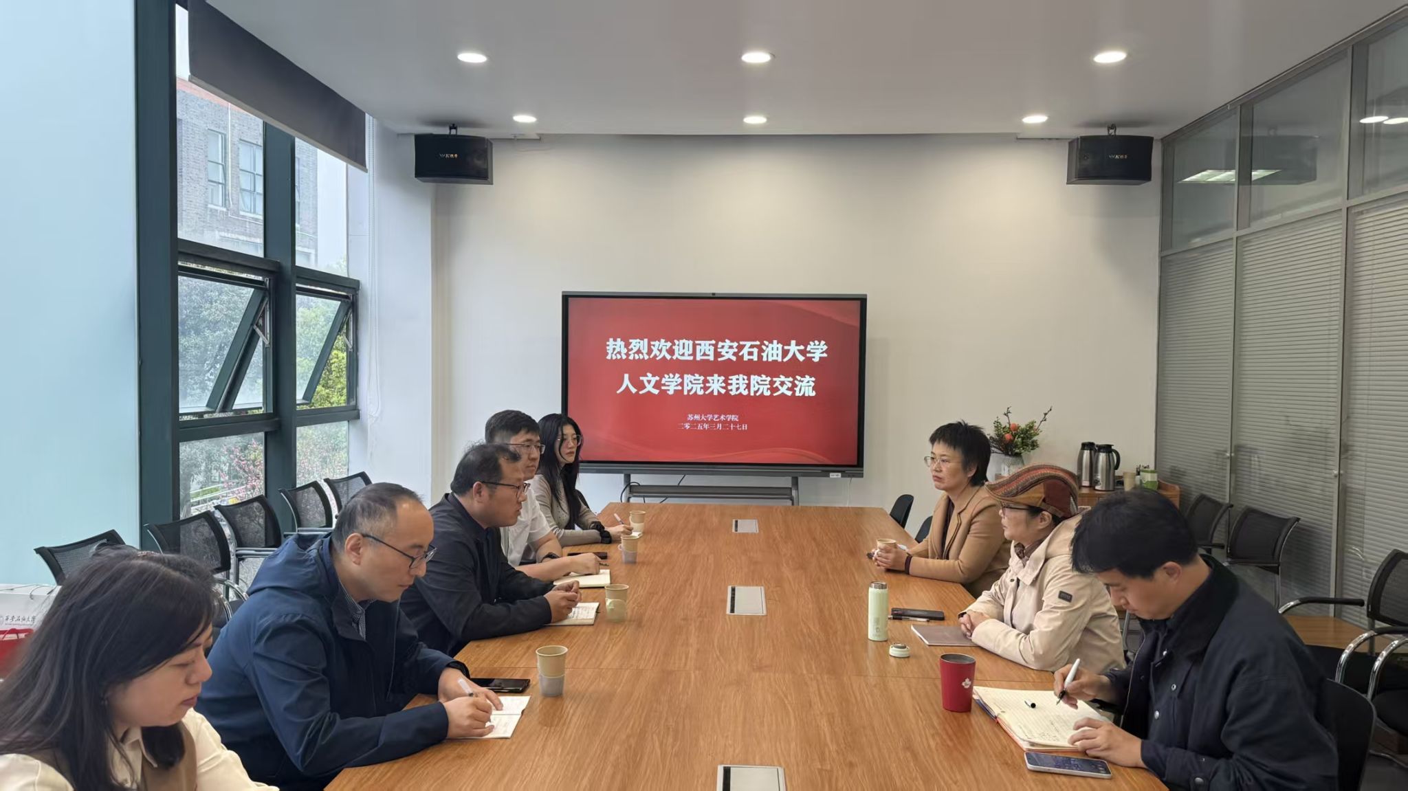 3月27日下午,人文學(xué)院一行又調(diào)研走訪了蘇州大學(xué)藝術(shù)學(xué)院,副院長王鷺代表學(xué)院熱情接待了大家,并從蘇州大學(xué)辦學(xué)歷史、藝術(shù)學(xué)院學(xué)科專業(yè)設(shè)置、本科培養(yǎng)特色和地域文化融入理論實踐教學(xué)方面進(jìn)行了詳細(xì)介紹。大家隨后參觀了學(xué)院實踐工坊、藝術(shù)展館、實驗室等場地。