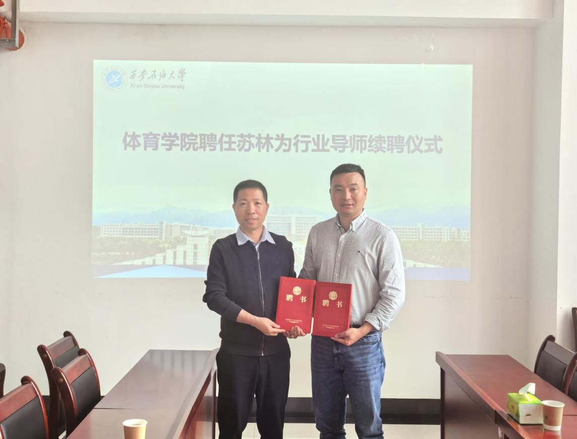 講座開始前,體育學(xué)院在鄠邑校區(qū)東體育場208會議室舉行了續(xù)聘儀式,繼續(xù)聘任蘇林院長為社會體育指導(dǎo)與管理專業(yè)行業(yè)導(dǎo)師、體育碩士專業(yè)學(xué)位研究生校外導(dǎo)師。