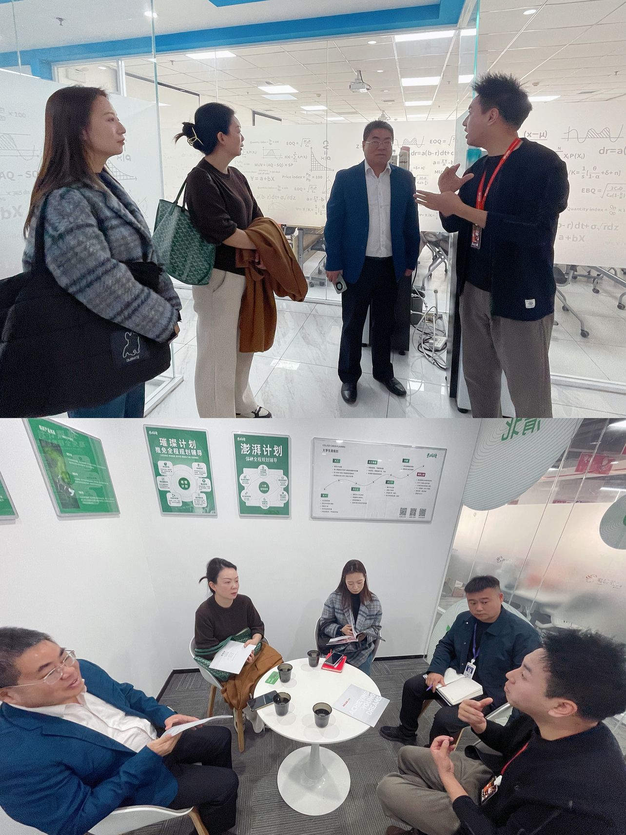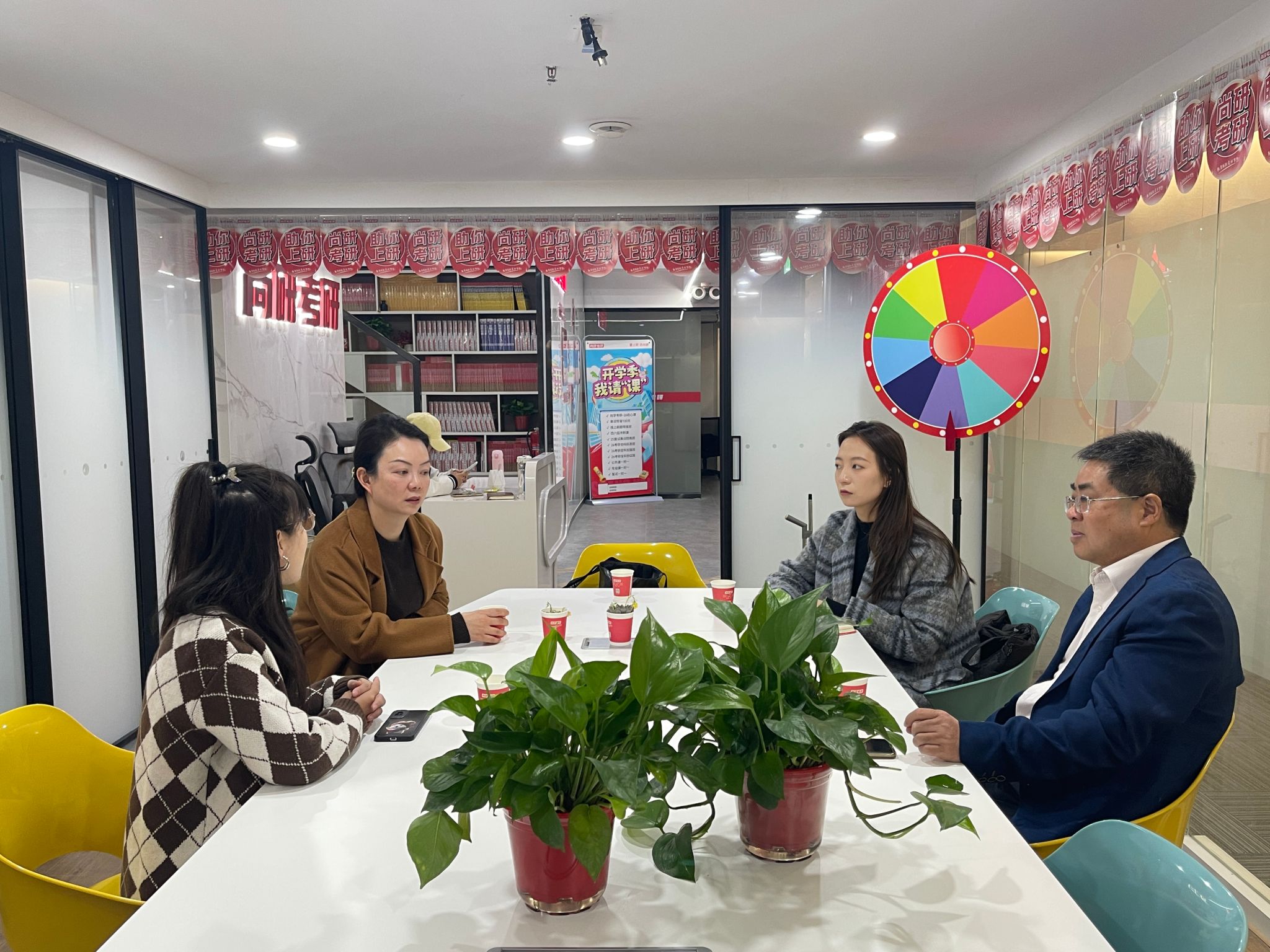隨后,學(xué)院一行來到尚研考研,雙方圍繞四六級成績提升、考研輔導(dǎo)、考公能力培養(yǎng)等議題展開深入探討。盛丹闡述了人文學(xué)院學(xué)生在考研、升學(xué)、考公等領(lǐng)域的多元需求。尚研考研負責(zé)人劉老師詳細介紹了機構(gòu)的特色課程體系與服務(wù)優(yōu)勢,提出了“四六級專項提升+考研全流程規(guī)劃”的初步合作方案,并表示將優(yōu)先保障人文學(xué)院學(xué)生的公益課程資源。