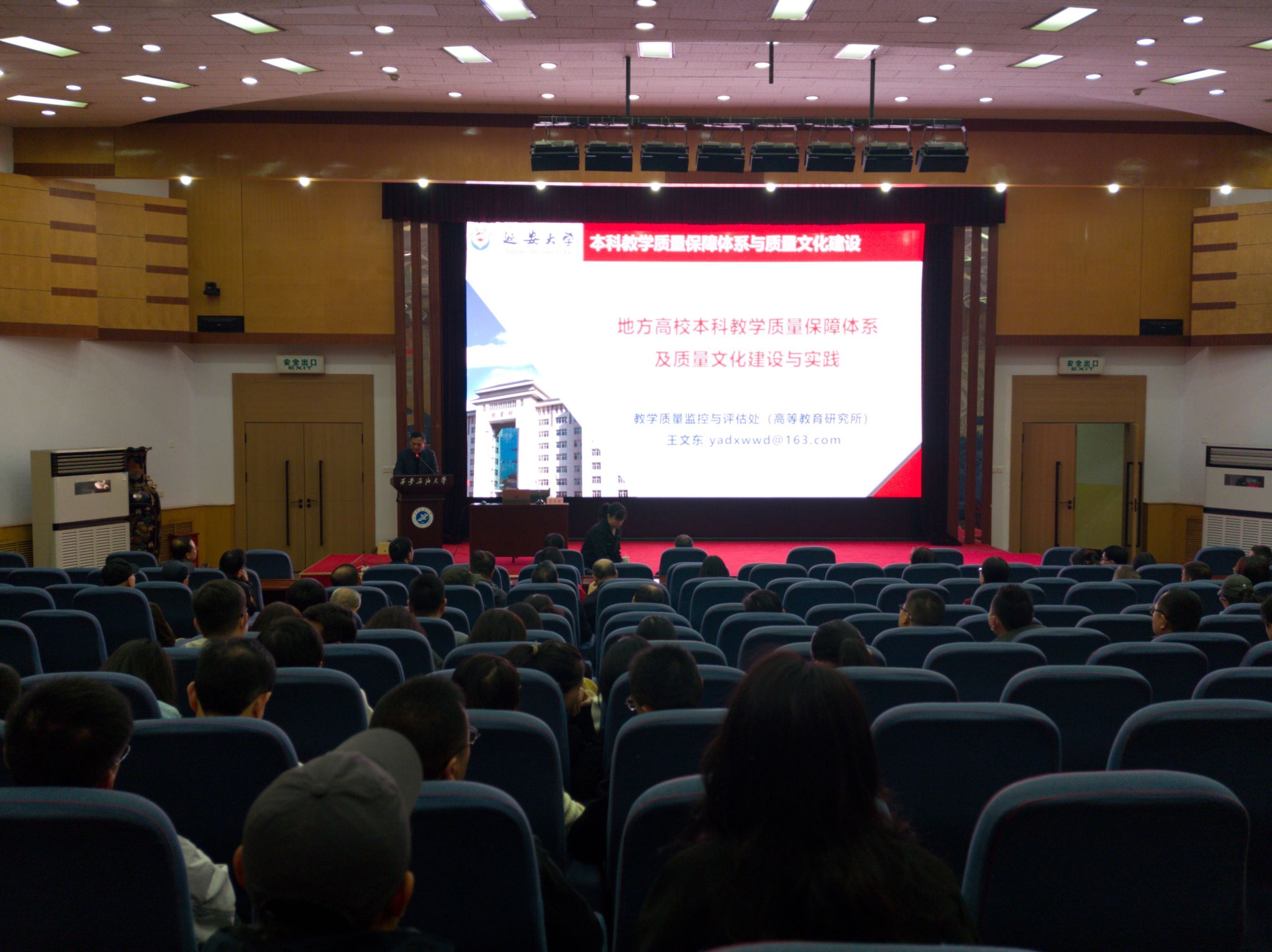 為扎實做好審核評估整改工作,推進(jìn)學(xué)校質(zhì)量保障體系和質(zhì)量文化建設(shè)。4月3日上午,學(xué)校在雁塔校區(qū)學(xué)術(shù)報告廳舉辦專題報告會,邀請延安大學(xué)教學(xué)質(zhì)量監(jiān)控與評估處處長王文東教授作題為“地方高校本科教學(xué)質(zhì)量保障體系及質(zhì)量文化建設(shè)與實踐”的報告。報告會由高教研究與評估督導(dǎo)中心主任傅海威主任主持,張君濤副校長出席報告會,校、院系兩級教學(xué)督導(dǎo)副組長,教務(wù)部全體處科級干部,黨委宣傳部、發(fā)展規(guī)劃處負(fù)責(zé)人,各院(系)教學(xué)副院長、系(教研室)主任、教學(xué)辦公室主任參加了報告會。