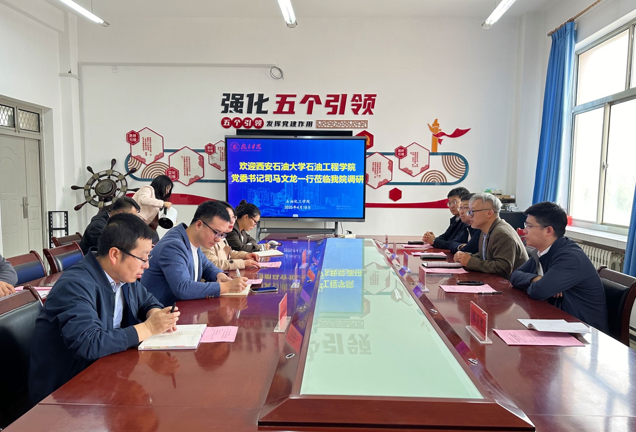 4月16日、18日,石油工程學院黨委書記司馬文龍一行前往延安大學、隴東學院進行黨建工作調(diào)研。學院黨委副書記張浩然、副院長王琛一同參加。