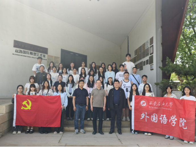 4月28日,外國語學(xué)院赴絲路國際雕塑文化藝術(shù)園開展英語系學(xué)生黨支部主題黨日暨教育實踐基地掛牌活動。學(xué)院黨委書記張建高,副書記邱嶺,學(xué)生工作辦公室負責人,學(xué)生黨員30余人參加,以深入學(xué)習(xí)和理解歷史文化為己任,用實際行動弘揚文化自信。