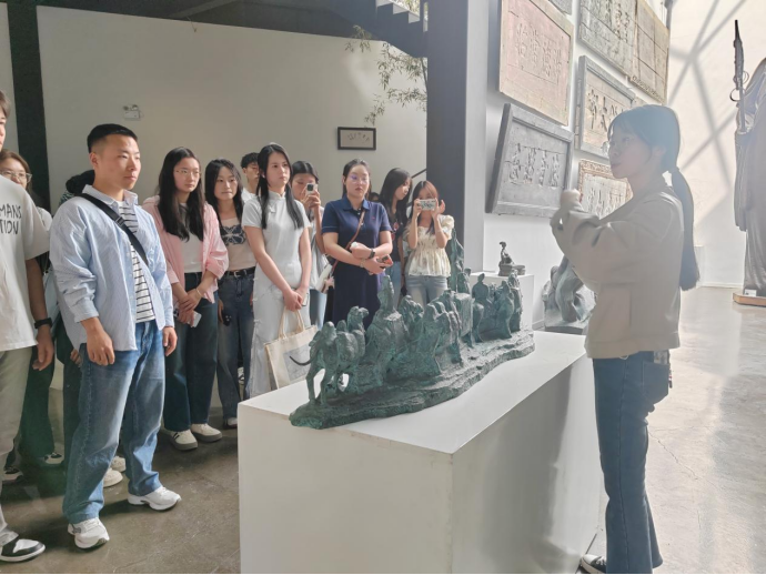 隨后,大家在講解員的引導(dǎo)下來到了絲路國際雕塑藝術(shù)館。這里展示了各種形態(tài)各異的雕塑作品,每一件作品都凝聚了藝術(shù)家的心血和智慧。師生黨員在欣賞雕塑藝術(shù)的同時,也感受到了多元文化交融。匾額作為中國傳統(tǒng)文化的重要組成部分,蘊含著豐富的歷史信息和文化內(nèi)涵。在這里,大家親眼見到了各種形狀、大小、材質(zhì)的匾額,每一塊匾額都承載著一段歷史故事和傳統(tǒng)文化。在講解員的解說下,大家對匾額的制作工藝、歷史背景和文化價值有了更深入的了解。