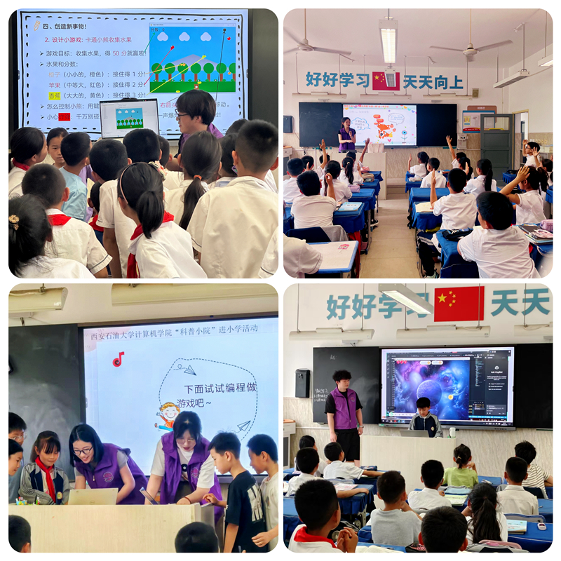 活動(dòng)當(dāng)天,學(xué)院組織的四支科普宣講小隊(duì)分別走進(jìn)不同班級(jí),結(jié)合小學(xué)生的年齡特征和學(xué)習(xí)興趣,精心設(shè)計(jì)教學(xué)內(nèi)容和互動(dòng)環(huán)節(jié),通過“知識(shí)講解+趣味游戲+人機(jī)互動(dòng)”相結(jié)合的方式,向孩子們生動(dòng)講述計(jì)算機(jī)的發(fā)展歷程、智能應(yīng)用、人工智能等前沿知識(shí),讓科技理念以貼近生活、通俗易懂的方式走進(jìn)小學(xué)生,在潛移默化中點(diǎn)燃他們探索科技的熱情。