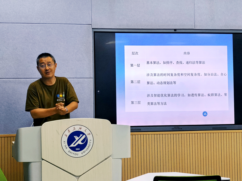 分享會上,周老師分享了自己在 ACM - ICPC、CCPC 等大賽指導過程中的寶貴經歷。他從經典的算法案例入手,深入淺出地剖析其中的精妙邏輯,隨著分享地逐步展開,仿佛在同學們面前徐徐打開了一幅絢麗的算法畫卷。他還穿插講述了那些在競賽中披荊斬棘的故事,時而提及某個學生突破難題時的靈光乍現(xiàn),時而強調團隊協(xié)作在算法優(yōu)化中的關鍵作用。