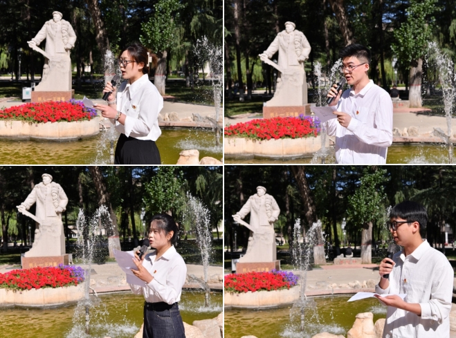 最后,學(xué)院黨委書(shū)記高小明給大家講述了一堂微黨課。他講到,在鐵人廣場(chǎng)的鐵人雕像前,舉辦“傳承鐵人精神 爭(zhēng)做西部鐵人”研究生畢業(yè)班黨員主題黨日活動(dòng),既是對(duì)鐵人精神的崇高致敬,也是對(duì)我們即將踏上新征程的畢業(yè)班黨員的一次深刻黨性教育。鐵人王進(jìn)喜,這位新中國(guó)石油工業(yè)的奠基人,以他“有條件要上,沒(méi)有條件創(chuàng)造條件也要上”的豪邁氣概,為我們樹(shù)立了不朽的豐碑。他的愛(ài)國(guó)情懷、創(chuàng)業(yè)精神、求實(shí)態(tài)度和奉獻(xiàn)精神,構(gòu)成了鐵人精神的豐富內(nèi)涵,激勵(lì)著一代又一代石油人不斷前行。今天,師生齊聚在這里,重溫入黨誓詞,就是要銘記初心,牢記鐵人為人民服務(wù)的宗旨,將鐵人精神內(nèi)化于心,外化于行。他對(duì)全體畢業(yè)黨員提出點(diǎn)希望:一是要傳承鐵人精神,堅(jiān)定理想信念。鐵人精神的核心是愛(ài)國(guó)和奉獻(xiàn),是面對(duì)困難和挑戰(zhàn)時(shí)的不屈不撓。作為新時(shí)代的青年黨員,要時(shí)刻牢記自己的初心和使命,將個(gè)人的理想追求融入到國(guó)家和民族的事業(yè)中去,為實(shí)現(xiàn)中華民族偉大復(fù)興的中國(guó)夢(mèng)貢獻(xiàn)自己的力量。二是要勇?lián)鷷r(shí)代責(zé)任,爭(zhēng)做西部鐵人。服務(wù)國(guó)家能源戰(zhàn)略,是我們石油人義不容辭的責(zé)任。學(xué)院大部分同學(xué)選擇了在西部就業(yè)、在能源領(lǐng)域就業(yè),希望大家繼承和發(fā)揚(yáng)“鐵人精神”,牢記“將能源的飯碗牢牢的端在自己手里”,不畏艱難,勇于擔(dān)當(dāng),成為能源戰(zhàn)線上的主力軍。三是要持續(xù)學(xué)習(xí)進(jìn)步,發(fā)揮示范引領(lǐng)。希望大家在學(xué)中干、在干中學(xué),養(yǎng)成終身學(xué)習(xí)的好習(xí)慣。每一名黨員要牢記自己的身份和責(zé)任,發(fā)揮黨員先鋒模范作用。要傳承鐵人精神,爭(zhēng)做西部鐵人,用實(shí)際行動(dòng)書(shū)寫(xiě)屬于青年學(xué)子的精彩篇章!