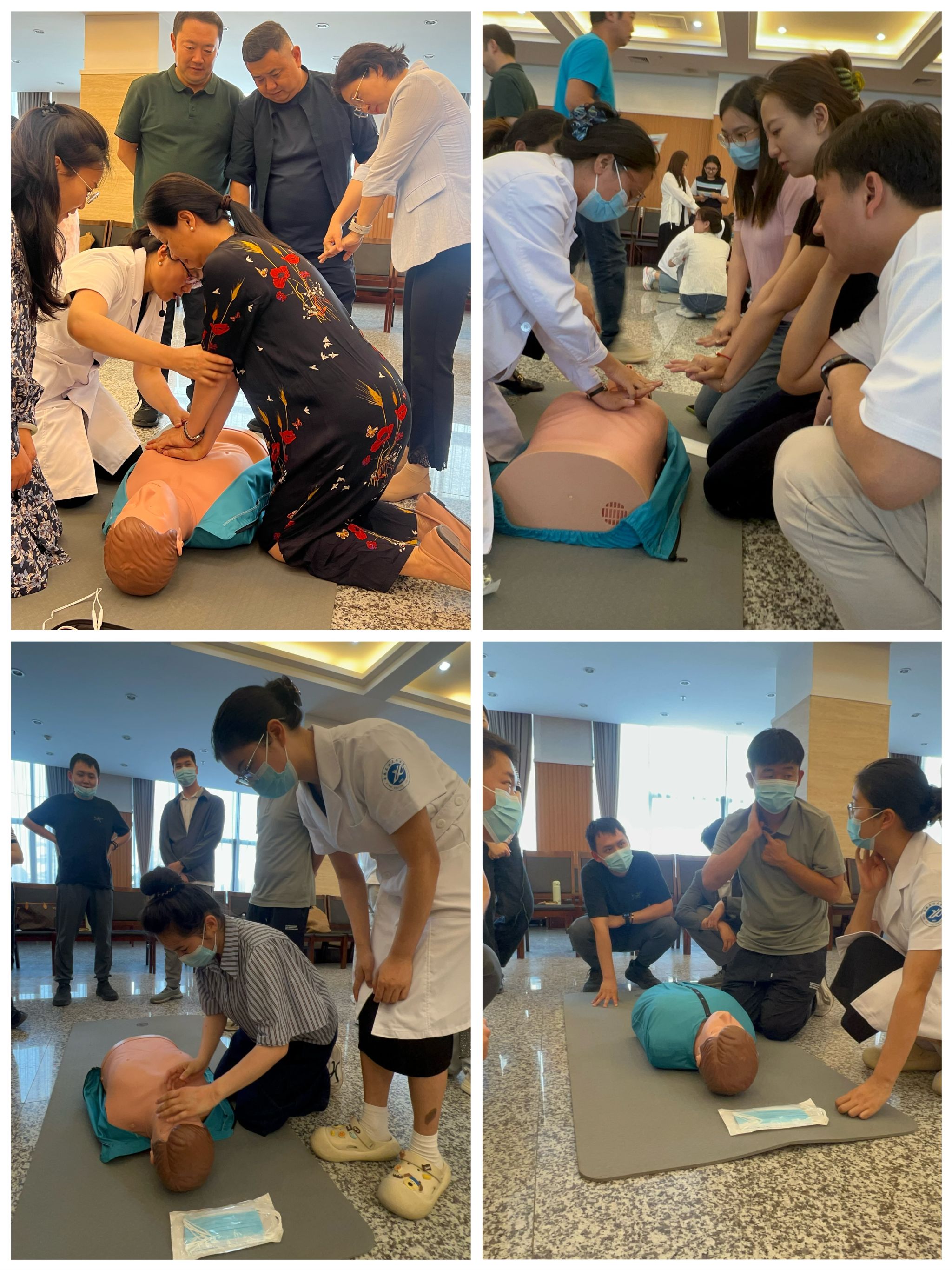 培訓現(xiàn)場,宋彥霞醫(yī)生以扎實的專業(yè)功底,圍繞心肺復蘇&AED使用、氣道異物梗阻處置、外傷止血包扎、燒燙傷應急處理等四項核心急救技能展開教學。她先結合典型案例,系統(tǒng)解析心肺復蘇、海姆立克急救法的原理、適用場景及操作邏輯,強調“黃金救援時間”內規(guī)范施救的關鍵意義。