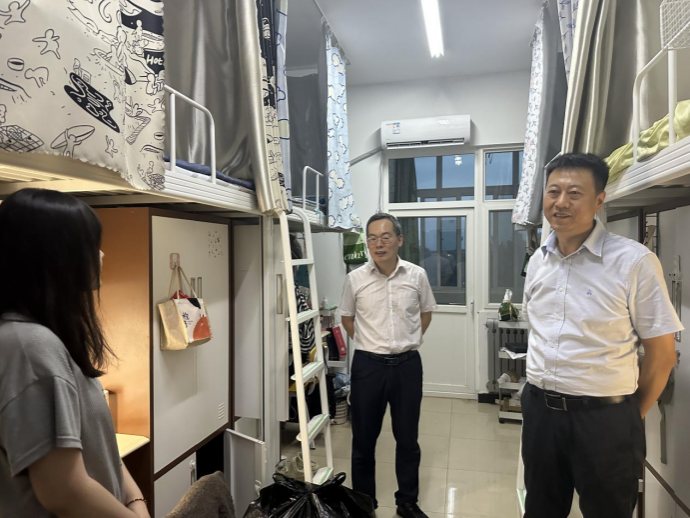 為切實做好2025屆畢業(yè)生畢業(yè)季相關工作,進一步了解我院畢業(yè)生的思想動態(tài)與生活狀況,傳遞學院關懷,6月9日,外國語學院黨委書記張建高、副院長陳武、學生工作辦公室副主任陳浩、輔導員王藝蓉深入2025屆畢業(yè)生宿舍,為即將踏上征程的畢業(yè)生送上溫馨的關懷與祝福。