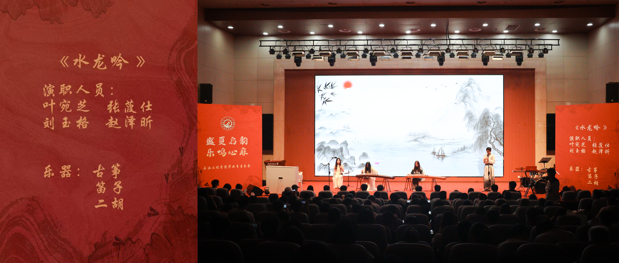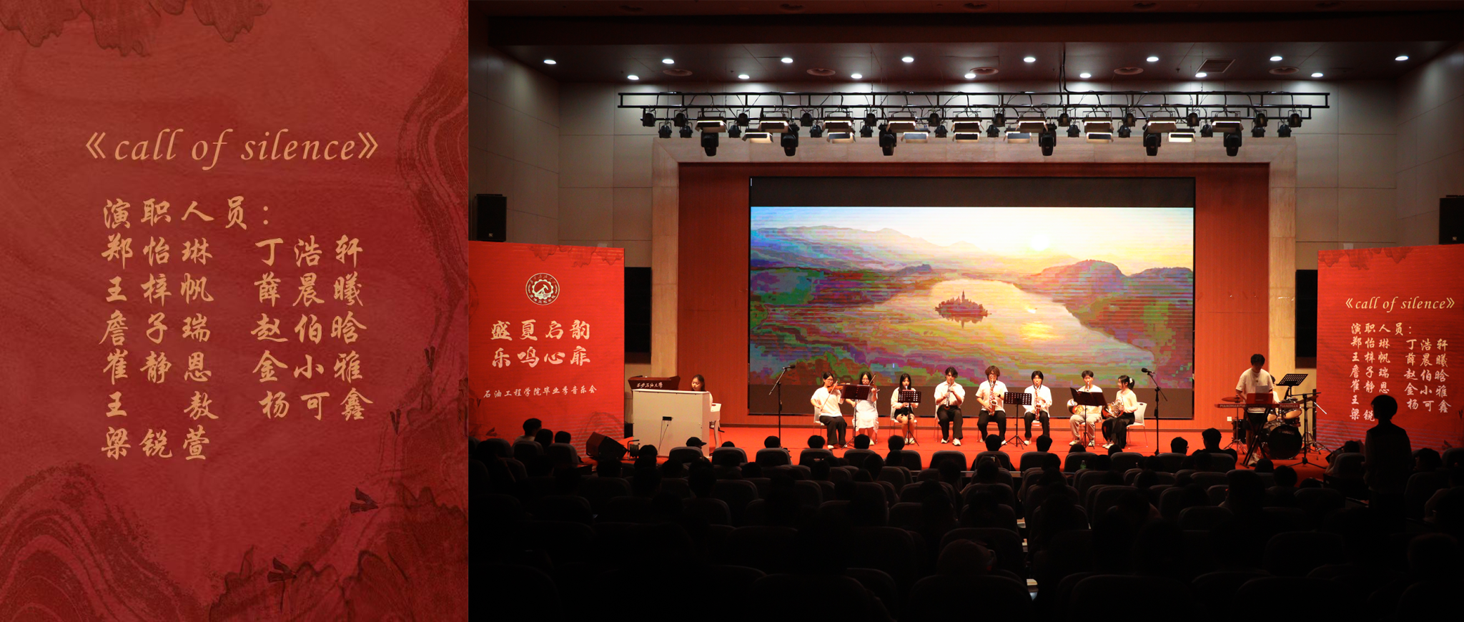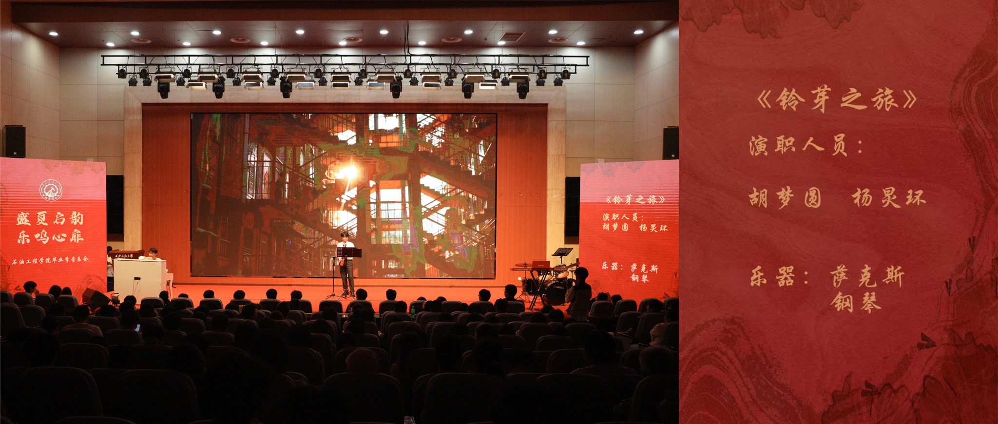 為深入貫徹落實學校第三次黨代會精神,積極響應(yīng)“一流西石大、文化西石大、幸福西石大”建設(shè),傳承和弘揚石油精神、鐵人精神、春雨精神,6月6日晚,石油工程學院“盛夏啟韻,樂鳴心扉”畢業(yè)季音樂會在鄠邑校區(qū)圖書館弘石報告廳深情上演。音樂會以校史脈絡(luò)為敘事主線,通過四個篇章的音樂演繹,串聯(lián)起學校74年發(fā)展歷程中的重要節(jié)點,為師生呈現(xiàn)了一場兼具歷史厚重感與青春感染力的視聽盛宴,學院師生及兄弟院系嘉賓400余人共同觀看了此次演出。