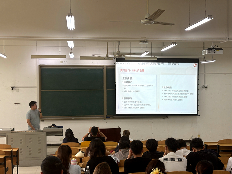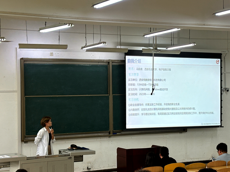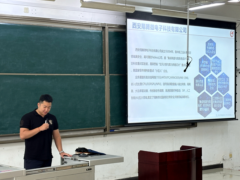 隨后,杜明輝進(jìn)行了講解。他從公司科研環(huán)境、合作科研基地、服務(wù)平臺(tái)以及主要研發(fā)方向等方面,向同學(xué)們詳細(xì)介紹了西安翔騰微電子科技有限公司的基本情況和實(shí)習(xí)情況。作為與學(xué)校保持了五年校企合作關(guān)系的企業(yè),公司在行業(yè)內(nèi)成績斐然,相信會(huì)為同學(xué)們的實(shí)習(xí)實(shí)踐提供廣闊的空間。學(xué)校研究生的加入也將為公司持續(xù)注入人才活力。