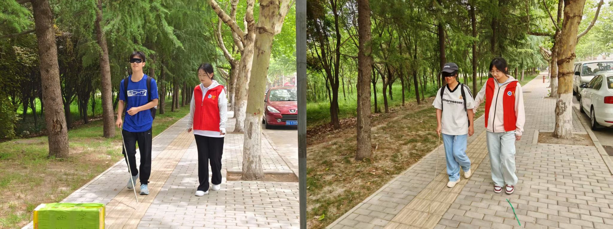 5月17日,青年志愿者協(xié)會在東區(qū)食堂及開心農(nóng)場附近環(huán)道開展盲道體驗活動。志愿者為參與者仔細蒙上眼罩,大家在志愿者的指引下,小心翼翼地踏上盲道,切身體會到視障群體出行時遭遇盲道受阻、環(huán)境復雜等重重困難。蒙眼疊衣服、蒙眼拼圖等活動更是加深了大家對視障群體的理解。期待更多人用實際行動為視障群體撐起一片晴朗天空,共同構建一個更加包容、和諧、美好的社會。