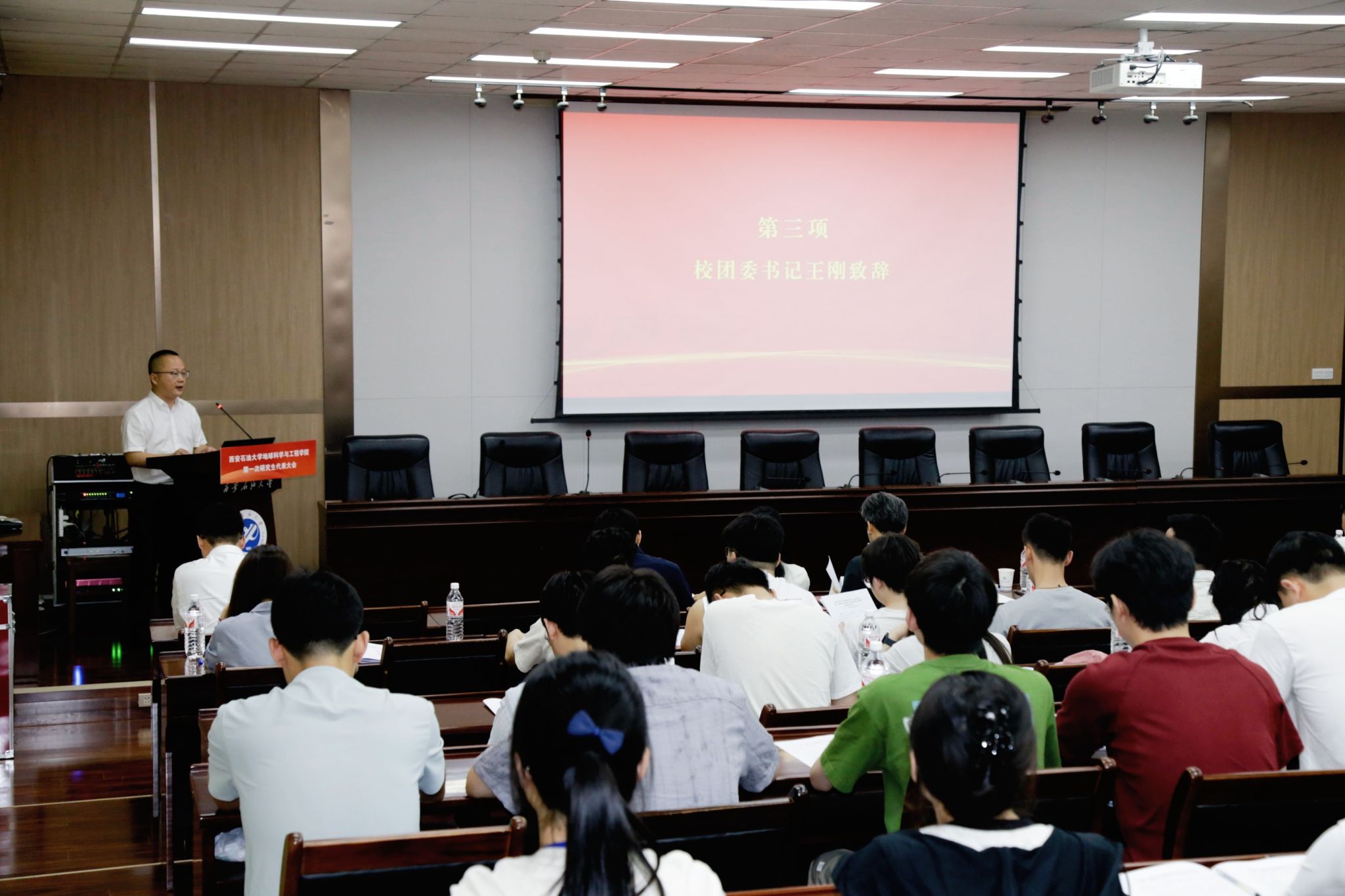 6月11日上午,地球科學與工程學院第一次研究生代表大會在雁塔校區(qū)會議中心第五會議室隆重召開。校團委書記王剛、研究生工作部思想教育與管理辦公室主任宋亞文、校研究生會代表邢曉靜出席會議,地球科學與工程學院黨委書記高黎、院長宋立軍、副院長黨偉、團委書記姜楠、黨委組織員姜英哲、研究生輔導(dǎo)員杜蕾出席會議,校研究生會代表受邀參會,各年級研究生代表參加會議。