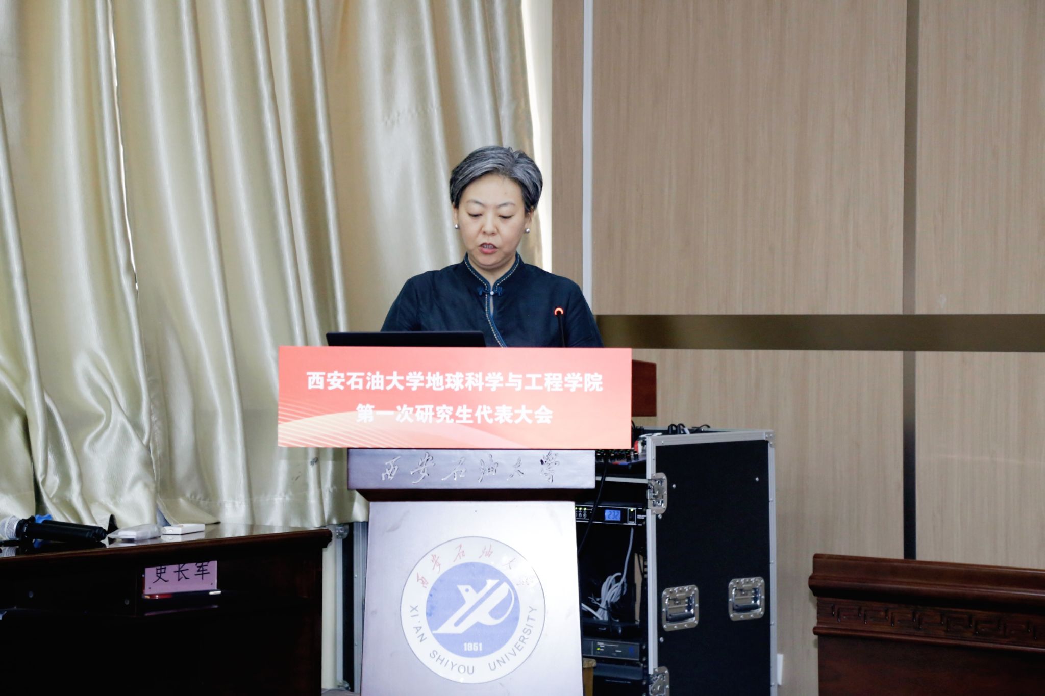 大會開始,全體人員肅立,奏唱《中華人民共和國國歌》,莊嚴的旋律拉開會議帷幕。隨后,地球科學與工程學院黨委書記高黎致開幕詞,她首先代表學院黨委,首先感謝校研究生會和各兄弟院系對我院第一次研代會的大力支持,并對相關(guān)負責人員在前期籌備階段的辛勤付出致以誠摯謝意。高黎書記在致辭中強調(diào),本次研究生代表大會肩負著重要的使命,一是要凝聚全院研究生的智慧與力量,形成發(fā)展合力,二是要引領(lǐng)廣大研究生同學,積極響應(yīng)建設(shè)特色鮮明高水平教學研究型大學的號召,主動擔當時代責任,積極貢獻青春力量,三是要激勵大家將個人理想融入國家發(fā)展偉業(yè),以昂揚的青春姿態(tài),為實現(xiàn)中華民族偉大復(fù)興的中國夢添磚加瓦。
