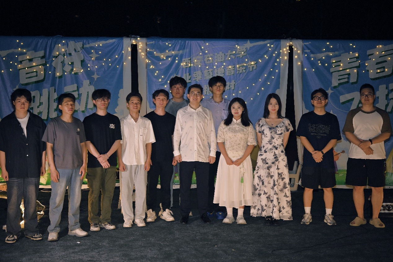 6月19日晚,西安石油大學(xué)雁塔校區(qū)足球場南側(cè)草坪化作露天音樂廳,由研究生工作部、音樂系主辦,校研究生會及石油工程學(xué)院、地球科學(xué)與工程學(xué)院研究生會共同承辦的“音符跳動·青春飛揚(yáng)”畢業(yè)季草地音樂節(jié)在此溫情啟幕。研究生工作部、音樂系負(fù)責(zé)人、研究生工作部工作人員、輔導(dǎo)員代表及研究生代表共200余人參加了此次活動?;顒右砸魳窞榧~帶,串聯(lián)起畢業(yè)學(xué)子的校園記憶,為離別季增添了一抹藝術(shù)亮色。