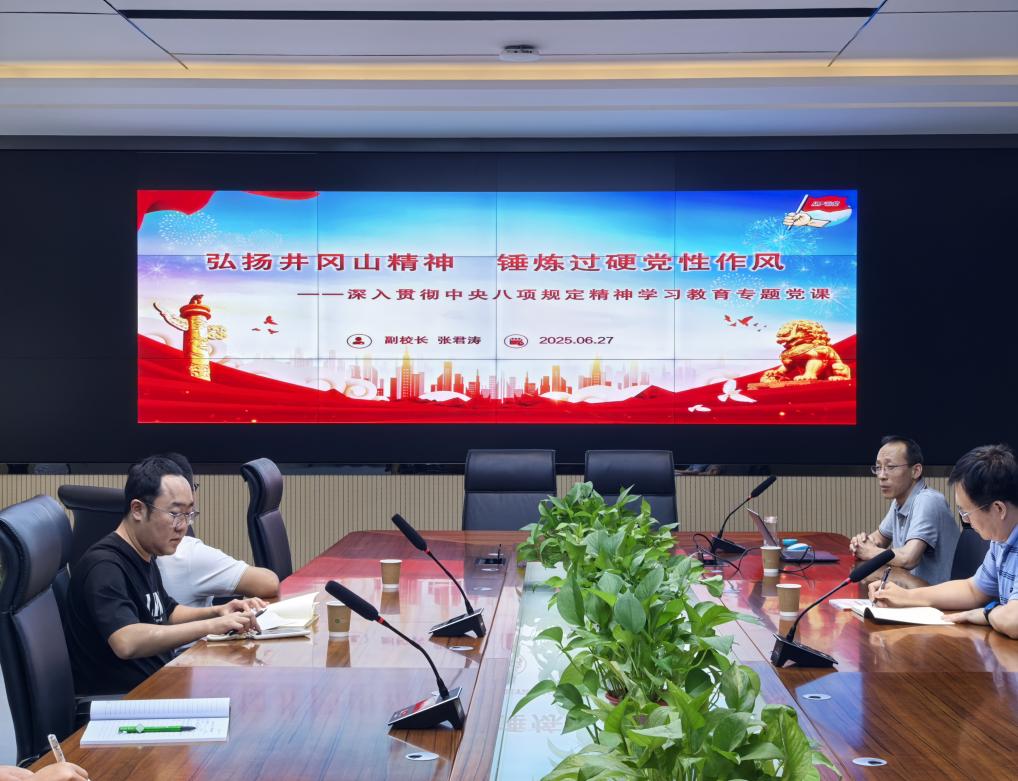 為深入貫徹落實(shí)中央八項(xiàng)規(guī)定精神,2025年6月27日上午,副校長(zhǎng)張君濤以“弘揚(yáng)井岡山精神,錘煉過(guò)硬黨性作風(fēng)”為主題,在鄠邑校區(qū)博覽樓116室為教務(wù)處黨支部全體黨員講授專題黨課。