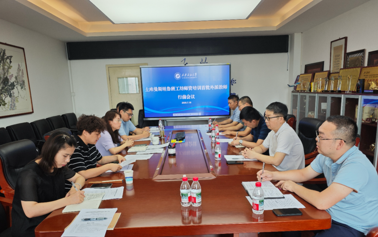7月10日上午,國際合作與交流處在東方石油樓801會議室組織召開了土庫曼斯坦“魯班工坊”師資培訓(xùn)首批外派教師行前會。國際合作與交流處處長董皓,地球科學(xué)與工程學(xué)院副院長、赴土教師培訓(xùn)團(tuán)團(tuán)長沈鴻雁,計(jì)算機(jī)學(xué)院副院長楊文陽,赴土教師培訓(xùn)團(tuán)成員吳少波、趙濟(jì)東、曹勃及科研處、國際處有關(guān)工作人員參加會議,會議由國際合作與交流處副處長顏庭星主持。
