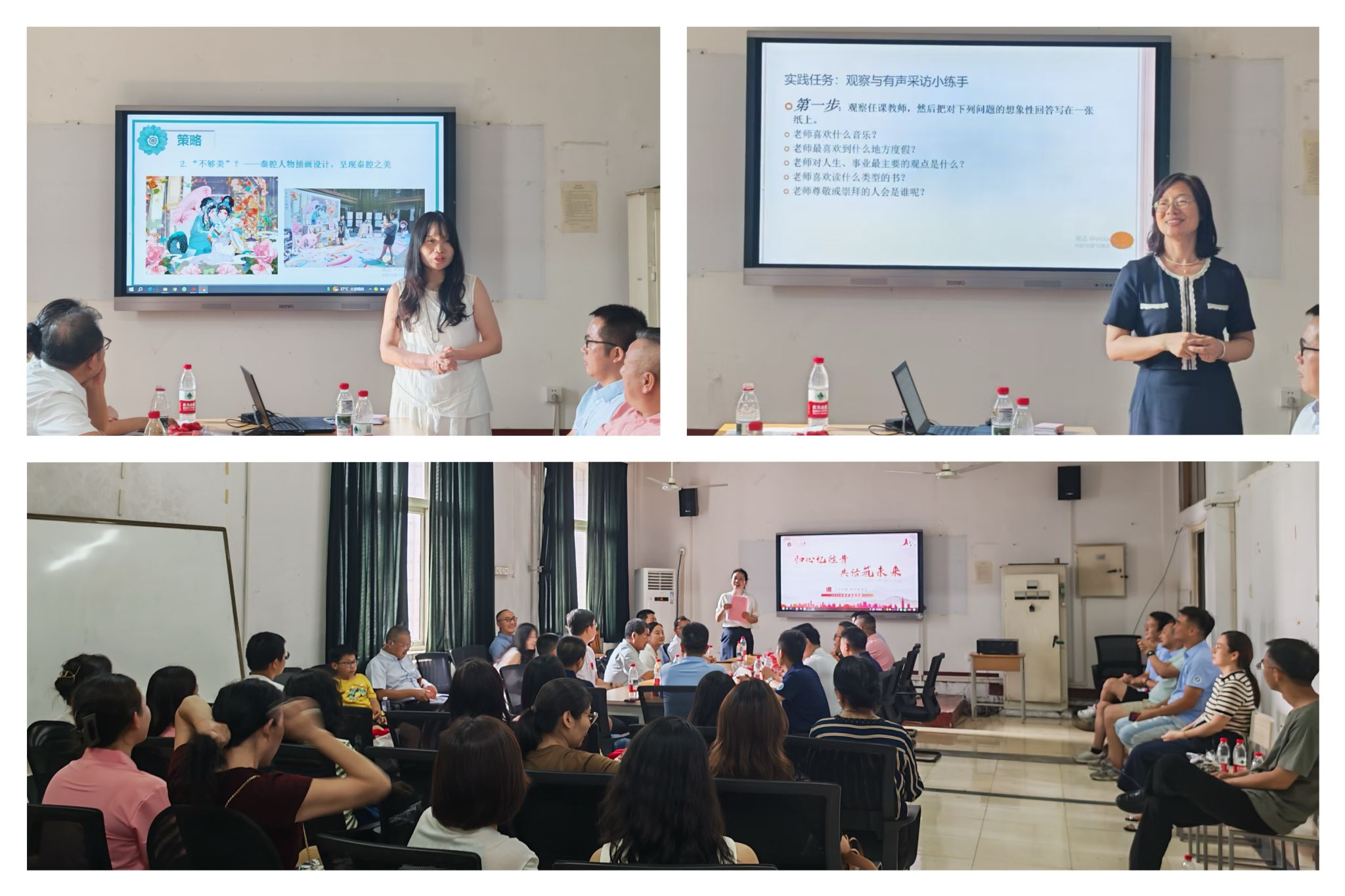 師生座談會。下午16:00,雁塔校區(qū)一號教學(xué)樓f407會議室座無虛席,“歸心憶往昔·共話筑未來”人文學(xué)院師生座談會在此舉辦。余小勇致開場詞,他代表學(xué)院向遠(yuǎn)道而來的校友表示熱烈歡迎,他提到,校友們在不同領(lǐng)域書寫精彩,把人文精神播撒四方。大家是學(xué)院最寶貴的財富,無論身在何處,人文學(xué)院永遠(yuǎn)是大家的最堅實的后盾。方亭向校友們介紹了學(xué)校與學(xué)院今年的發(fā)展,展示了學(xué)院在學(xué)科建設(shè)、人才培養(yǎng)等方面取得的突破與成就,并展望了學(xué)院未來發(fā)展的美好愿景。隨后,校友們結(jié)合自身境況和工作經(jīng)驗,與各專業(yè)教師展開深入討論,積極建言獻(xiàn)策,助力學(xué)院未來發(fā)展規(guī)劃。在座談會中,還有一個特別的環(huán)節(jié)。應(yīng)校友邀請,設(shè)計系教授肖雪鋒和新聞系教授單曉穎,為校友們開展了兩節(jié)別開生面的微課堂,分別聚焦陜西非遺品牌傳播和新聞有聲采訪,瞬間將校友們拉回到了往昔的校園課堂時光,讓他們那份深藏在心底的校園情懷得到了進(jìn)一步的升華。