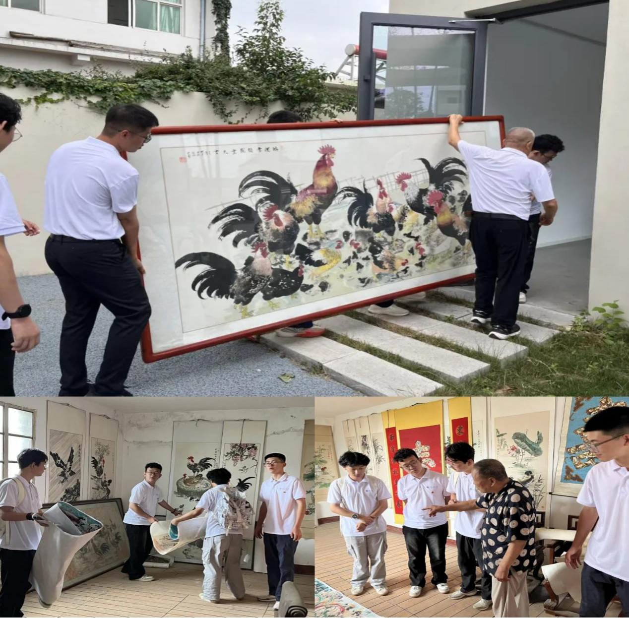 7月7日,實(shí)踐團(tuán)探訪國(guó)家級(jí)非遺傳承人段桂榮老人的畫室,了解關(guān)中農(nóng)民畫的文化內(nèi)涵與藝術(shù)價(jià)值。老人創(chuàng)作的《牡丹小雞》等作品,以公雞象征勤勞與希望,展現(xiàn)了深厚的鄉(xiāng)土文化底蘊(yùn)。實(shí)踐團(tuán)協(xié)助將老人耗時(shí)三月完成的巨型公雞畫移送至村傳統(tǒng)文化紀(jì)念館,助力非遺文化的保護(hù)與展示。隊(duì)員們表示,將積極搭建橋梁,推動(dòng)傳統(tǒng)技藝在當(dāng)代煥發(fā)新活力。