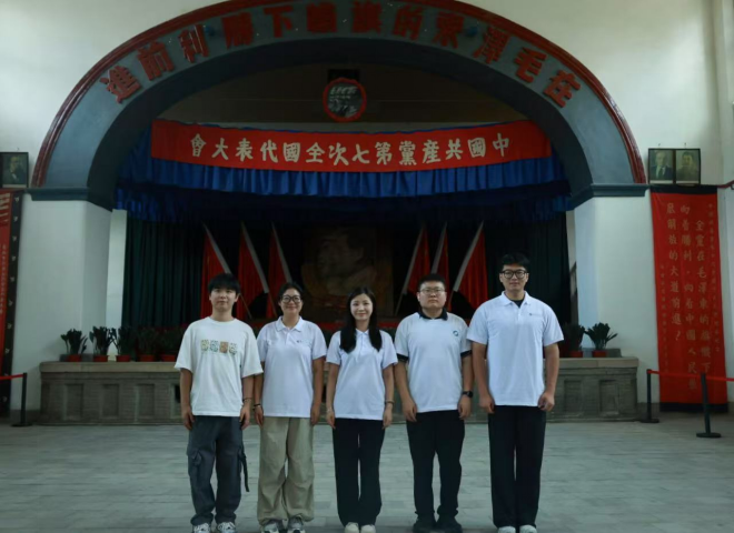 在楊家?guī)X革命根據(jù)地,實(shí)踐團(tuán)追尋思想之光,感悟理論之力。以中共七大會(huì)場(chǎng)——中央大禮堂為起始點(diǎn)開(kāi)展深度研學(xué)。身處見(jiàn)證過(guò)歷史轉(zhuǎn)折的中央大禮堂,張樂(lè)樂(lè)同學(xué)深受觸動(dòng),他在學(xué)習(xí)心得中特別寫(xiě)道:“站在七大禮堂,那句‘在毛澤東的旗幟下勝利前進(jìn)’的標(biāo)語(yǔ),讓我真切感受到科學(xué)理論武裝所迸發(fā)出的磅礴力量。不僅此行不僅是一次對(duì)思想之光的追尋,更是一次深刻的理論溯源和精神洗禮。”